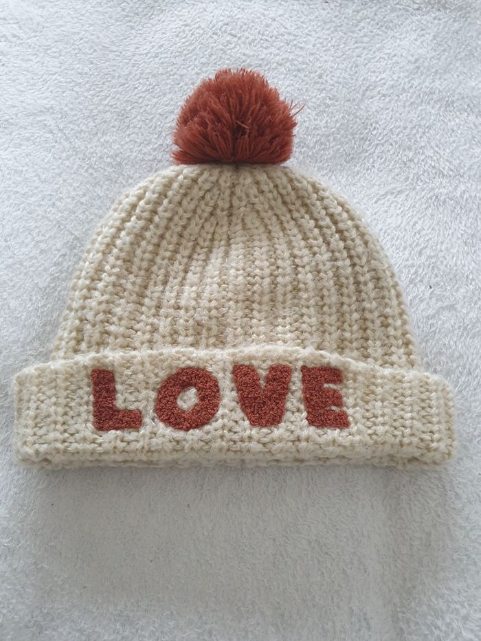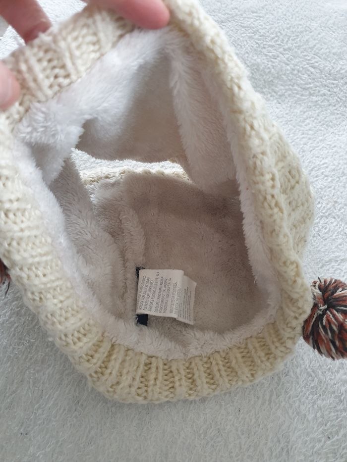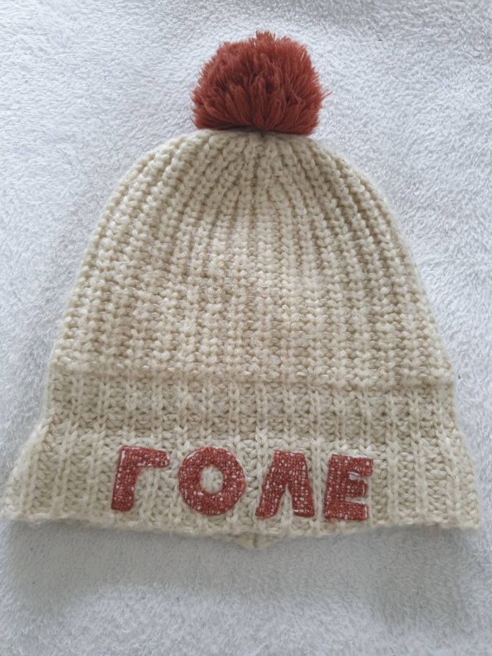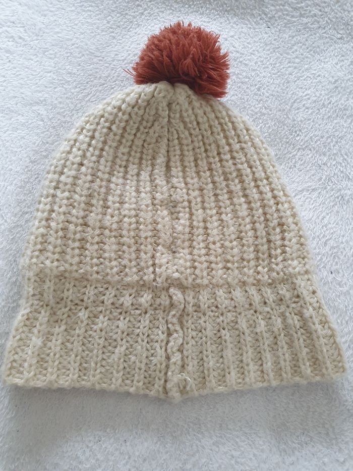 Bonnet a pompon. Enfants. . Taille 10/12 ans. Tout doux et bien chaud. Interieur polaire.