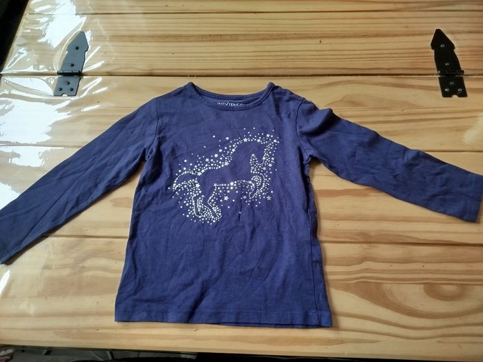 Maillot manche longue couleur bleu marine motif licorne marque in extenso taille 4 ans