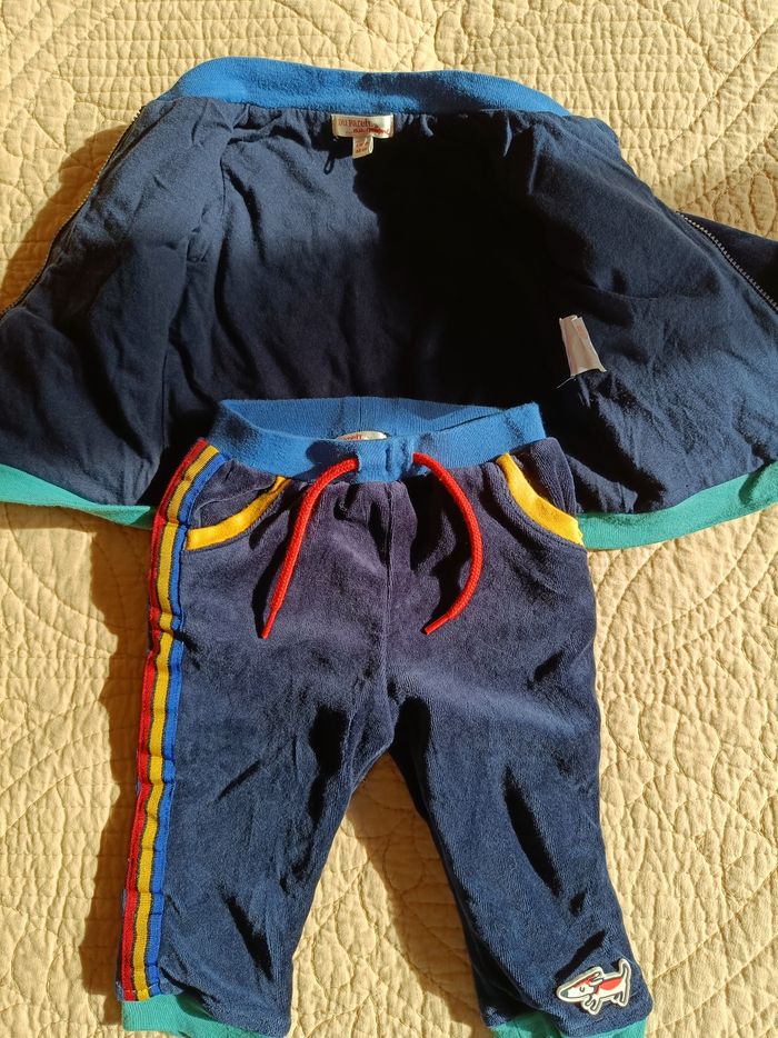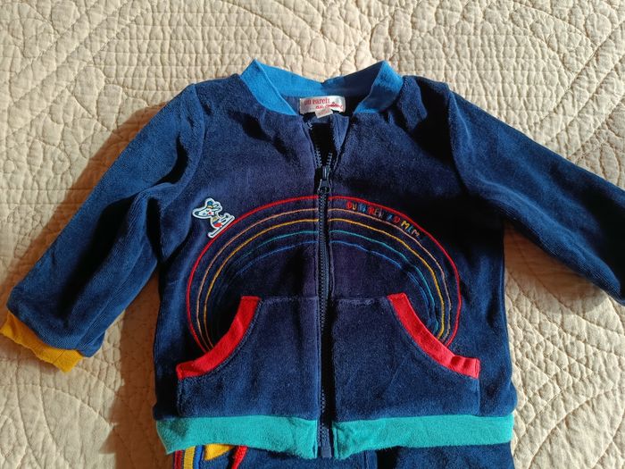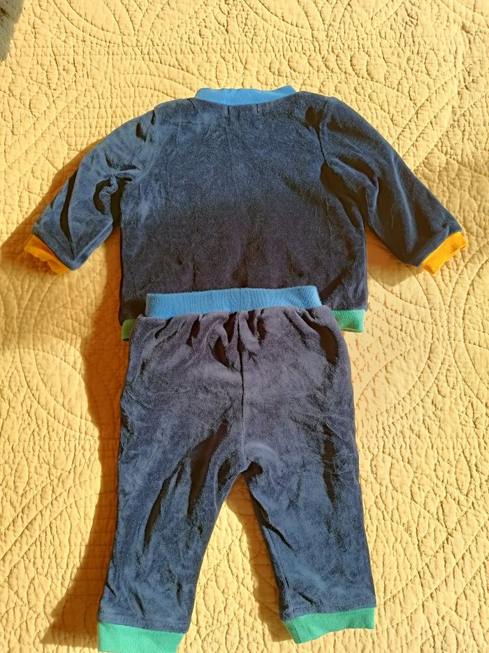 Ensemble jogging et veste effet velours. Ceinture élastique, veste avec fermeture éclair fonctionnelle et poche. Aucune tâche ni trou.