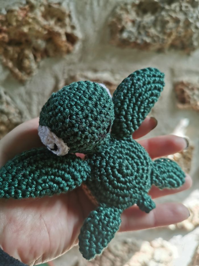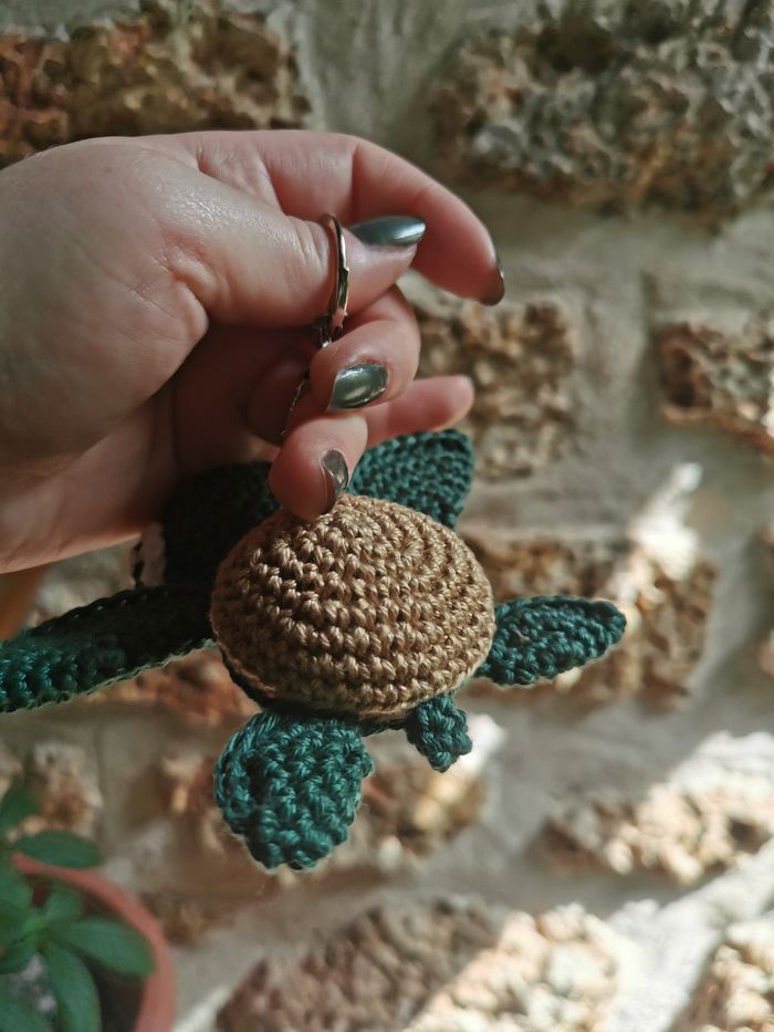 Tortue 🐱 porte-clĂ©s ou bijou de sac fait au crochet, mini pelotes de coton. TrĂšs douce et jolie, fait environ 7 cm. Faite par moi-mĂȘme.