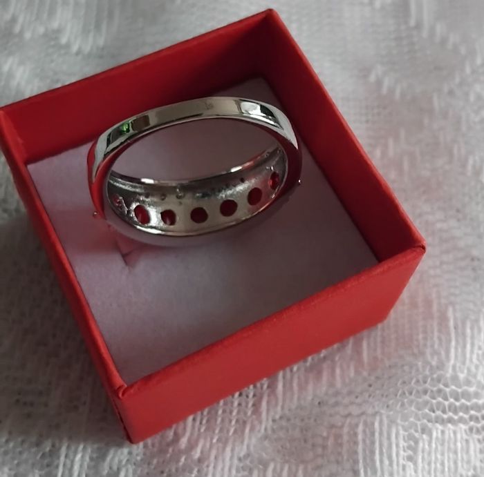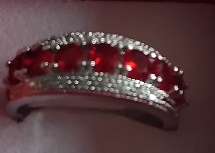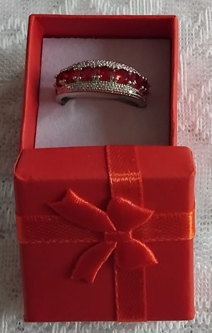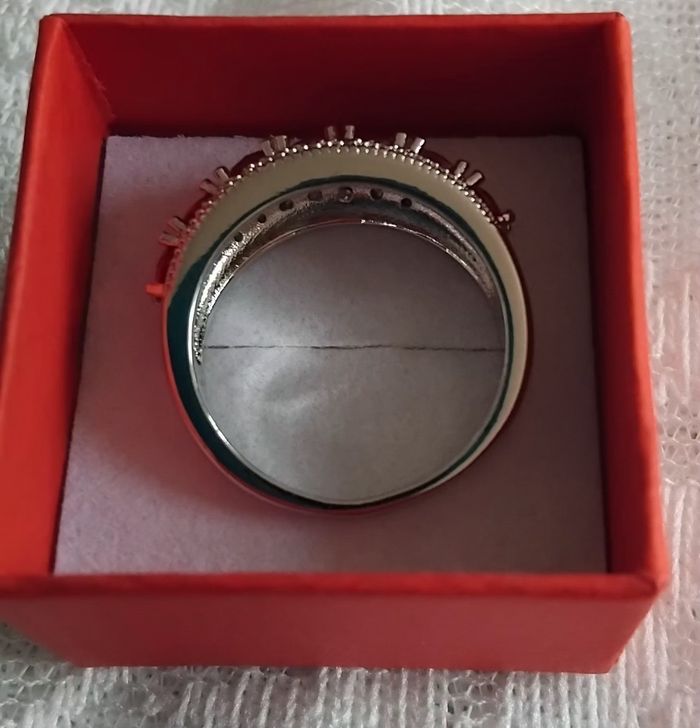 Bague style bohème argentée brillantes- pierres faux rubis - Taille : 60
