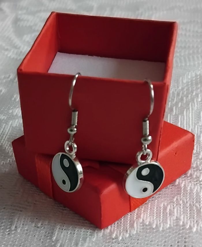 Paire de boucles d'oreilles creative Yin yang a trou - photo numéro 3