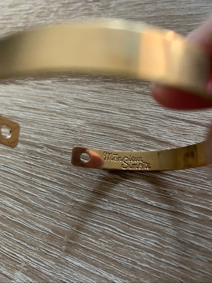 Jonc en laiton doré à l’or fin gravé Madame Monsieur Simone - photo numéro 4