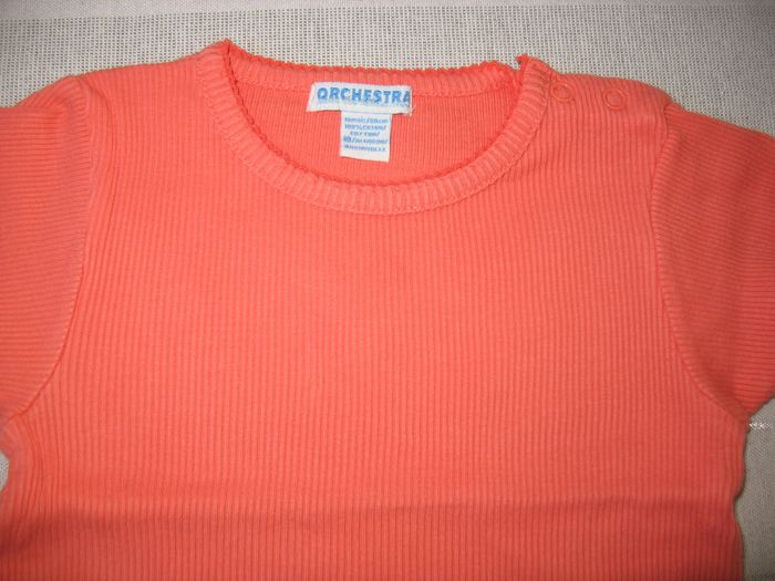 #18Mois_Bébé_Fille_Nathg2210 TEE SHIRT MC CORAIL BÉBÉ FILLE "ORCHESTRA" - 18 MOIS - n°01 Tee shirt côtelé à manches courtes corail - 2 pressions épaule - Matière : 100% coton. Article d'occasion en très bon état - Sans Trou - Ni tache - Lavé et repassé pour la vente. Possibilité d'envoyer d'autres photos sur simple demande. Maison non-fumeur - Sans animaux. Réduction lot activée. Allez voir mes autres ventes, je vide les placards. Beaucoup de vêtements de marque et beaucoup de jouets. Remise en mains propres ou possibilité d'envoi au tarif en vigueur à votre charge. Retour Refusé. Pour tout renseignement, n'hésitez pas à me contacter, je répondrai volontiers à vos questions. Réponse Assurée. Pour Consulter mes autres annonces tapez Nathg2210.