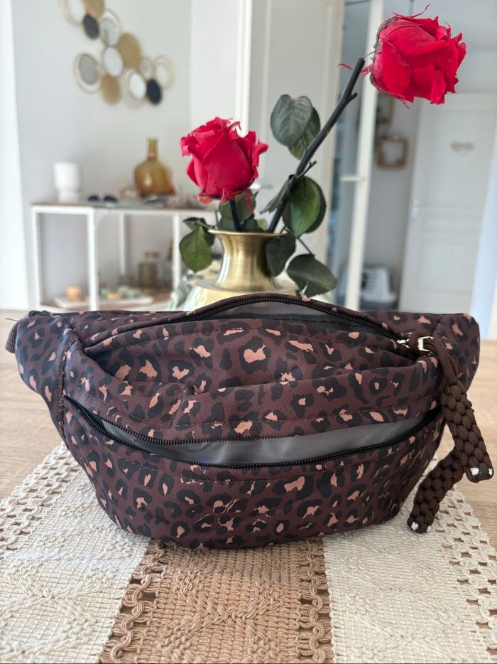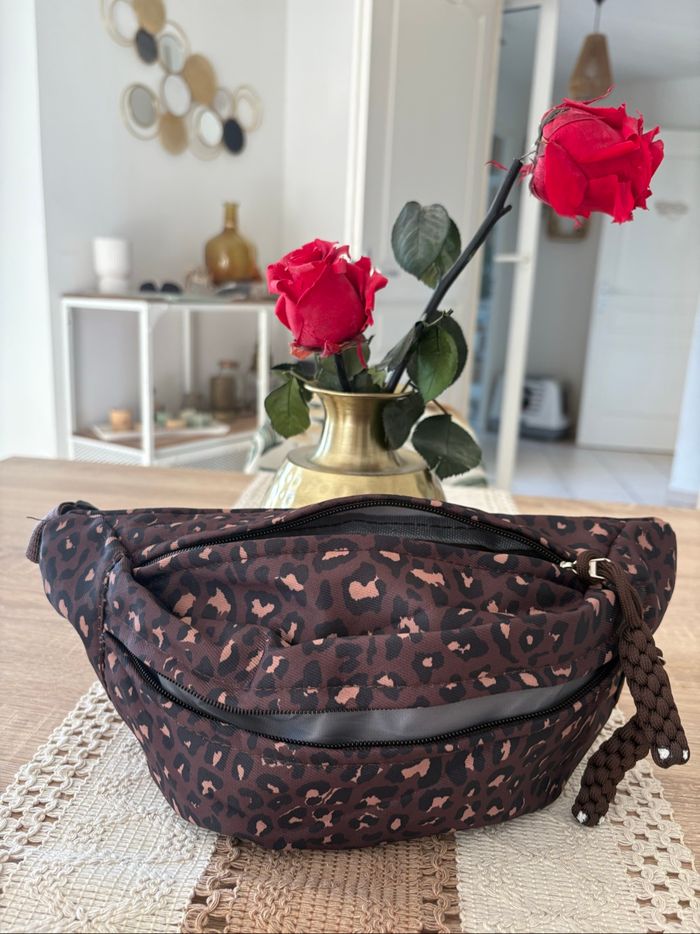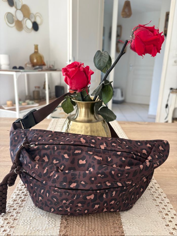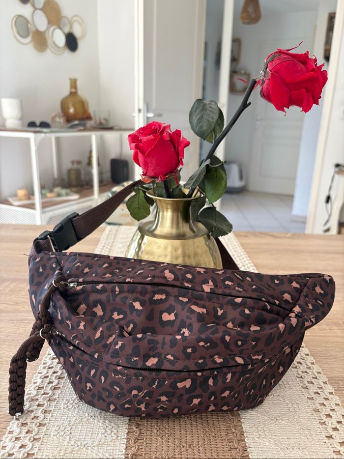 Sac banane marron imprimée léopard 2 compartiments neuve dans emballage (mixte ) 32x15 cm environ #sandra13190chapeau_accessoire_bijoux_sac