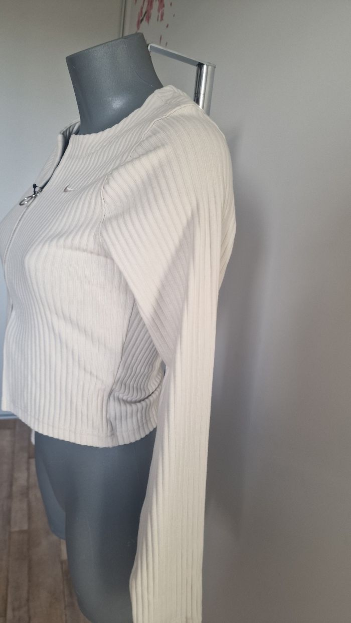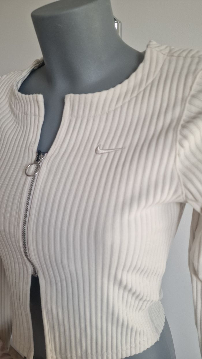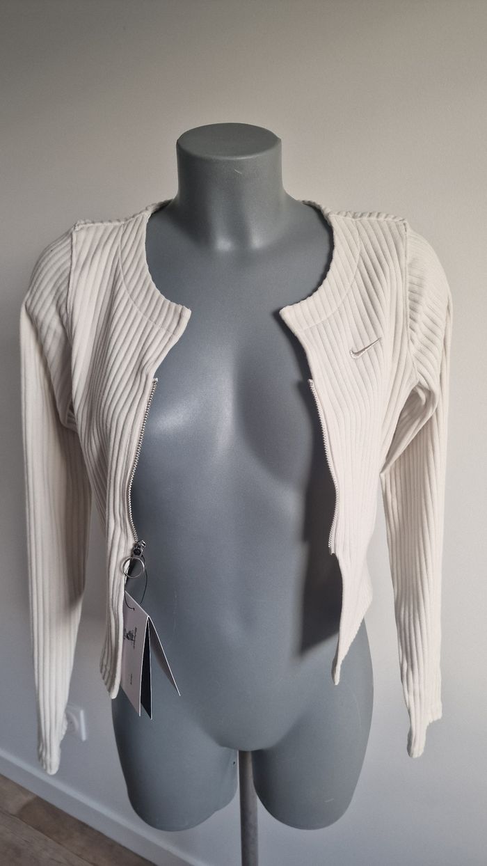 Avec un joli drapé et une silhouette profilée, ce cardigan ajusté est aussi agréable à porter qu'à regarder. Le jersey côtelé texturé est d'une grande douceur. La coupe légèrement courte va avec toutes tes tenues. Il ne te reste plus qu'à décider si tu veux le porter ouvert ou fermé. Couleur: crème Coupe: Slim Col: Rond Manche: Manches longues Fermeture: Fermeture éclair Détails: Broderie à l'avant, Broderie avec logo Impression: Basic Marque: Nike Neuf avec étiquette Envoi soigné et expédition rapide