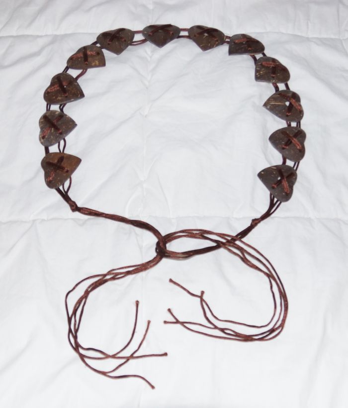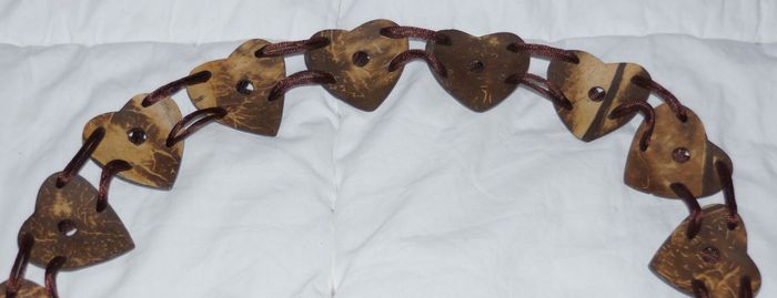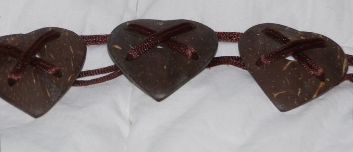 Motif cœur Fabriqué avec des noix de coco Lien marron brillant Cœurs sur une longueur de 70 cm Longueur totale 155 cm