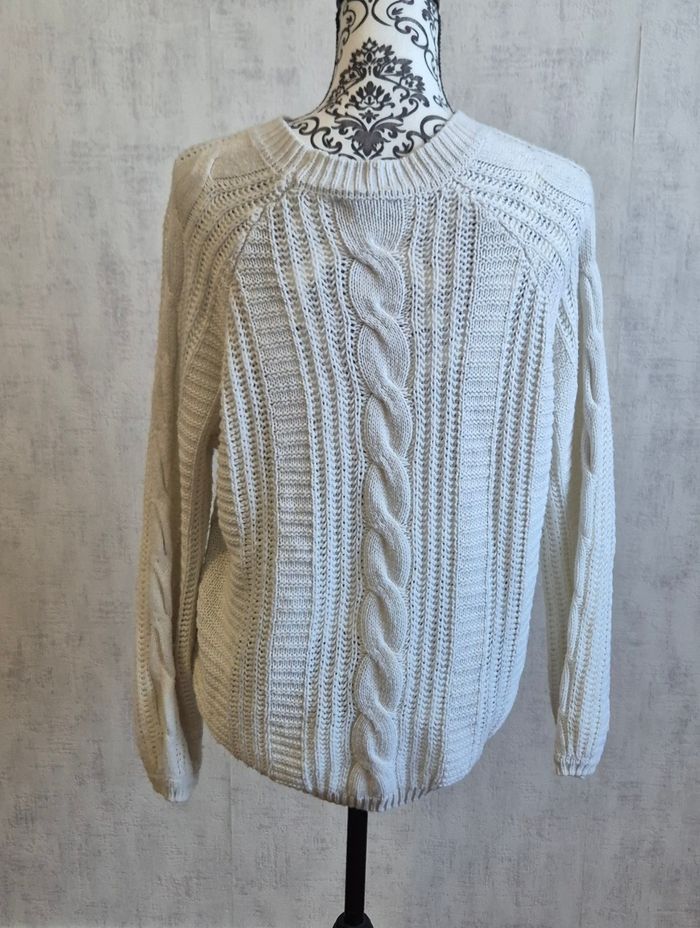 Pull torsadé col rond couleur blanc Jennifer Taille 34 XS Tres bon etat #pull #pulltorsade #pullfemme #pulljennyfer #pull34 #taille34 #femmetaille34 #hiver #hiverfemme #hiverfemme34