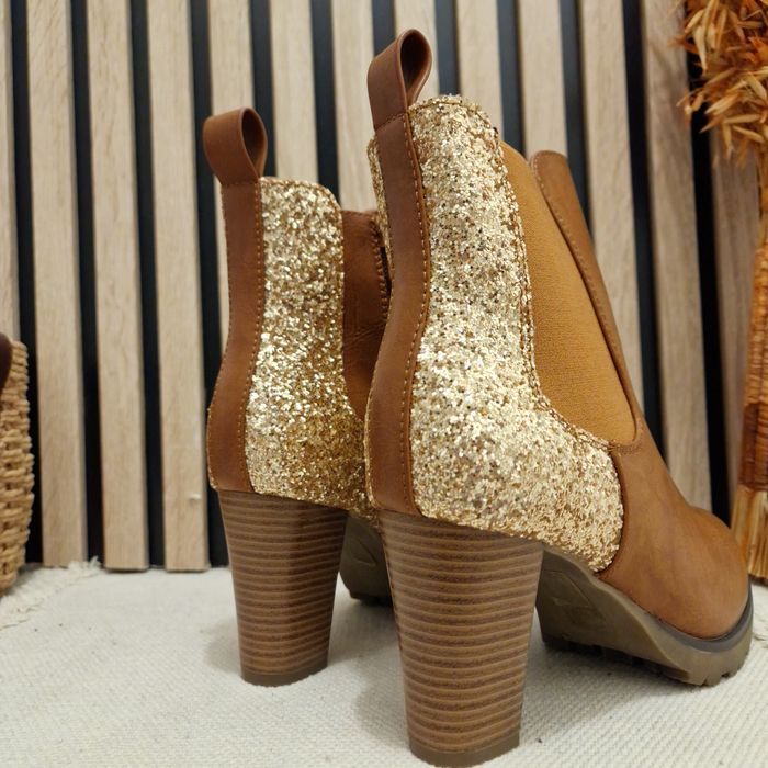 Bottines camel paillettes gold talons - photo numéro 1