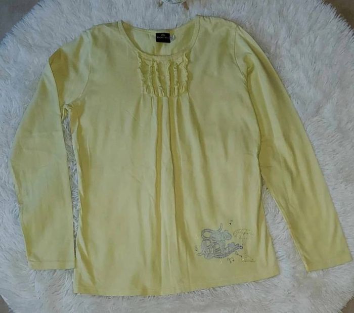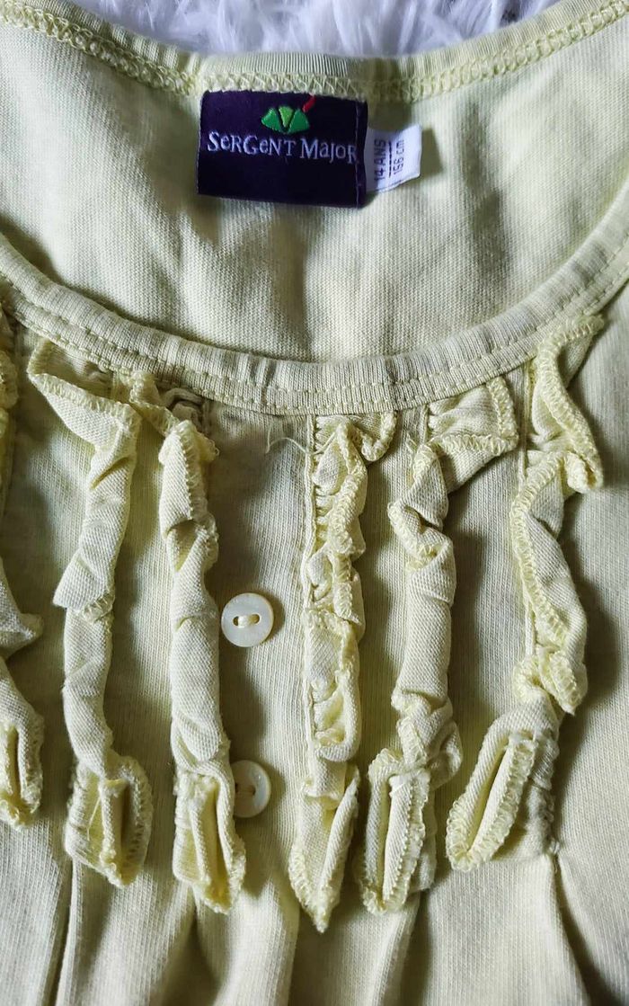 SERGENT MAJOR t-shirt vert anis manches longues petits froufrous devant longueur 56cm #lesplacardsenfolietaille13ans #lesplacardsenfolietaille14ans ref8