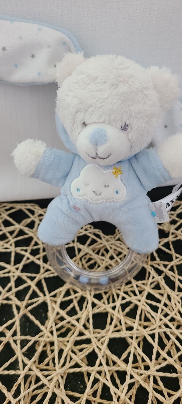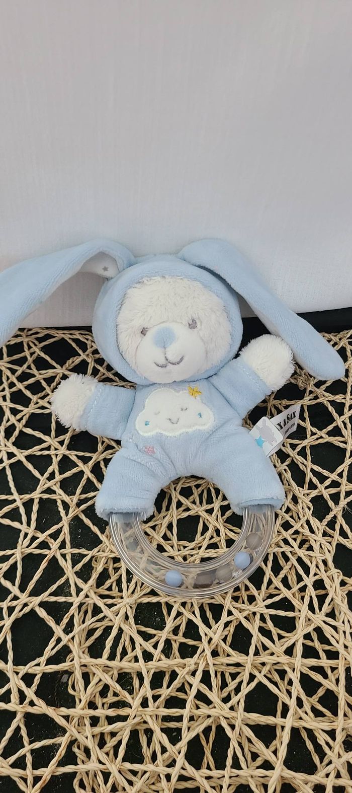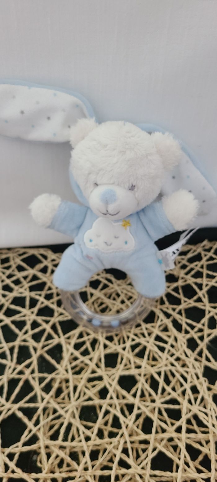 Doudou hochet ours lapin bleu blanc nuage MAX & SAX