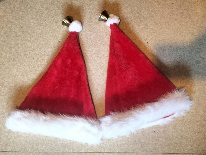 lot de 2 bonnets de Noël rouges avec clochettes. - Type de produit : Bonnet - Univers : Mixte - Couleur : Rouge / Blanc - Accessoires : Clochettes État neuf sans étiquette 6€ les 2 , 11€ les 4 , 15€ les 6