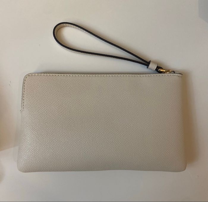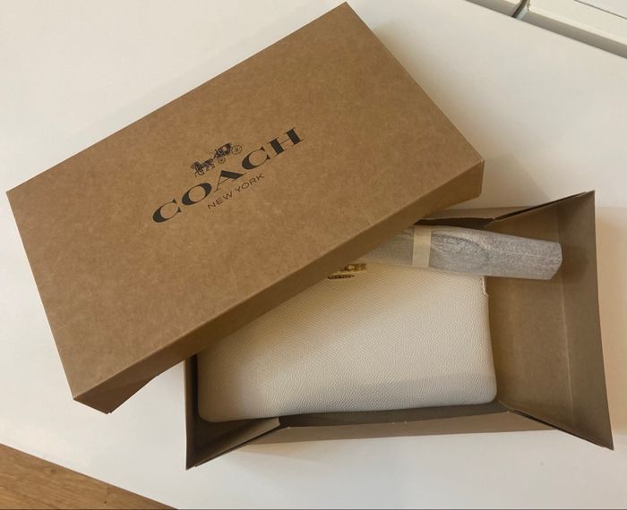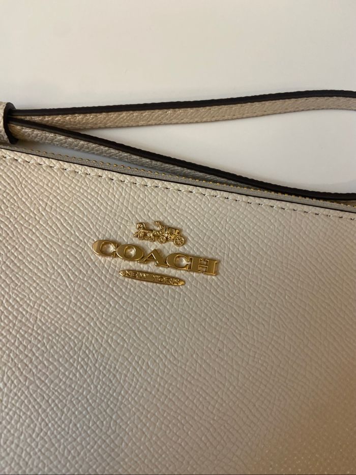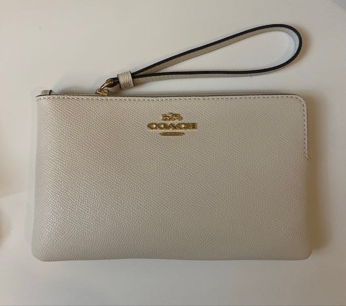 Pochette en cuir de la marque Coach dans une jolie couleur crème. - Type de produit : Pochette - Univers : Femme - Marque : Coach - Matière : Cuir - Couleur : Crème / Blanc cassé / Écru - Dimensions : 20 x 12 cm État neuf sans étiquette Authentique