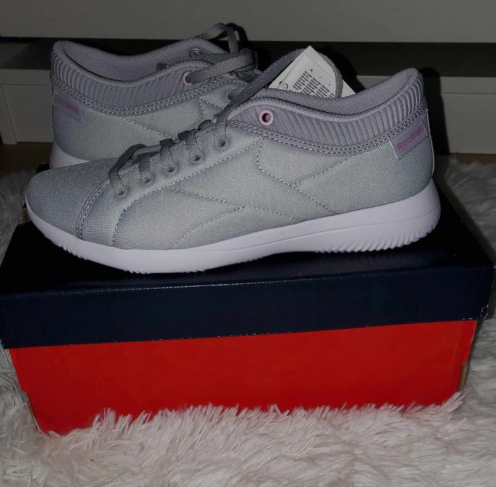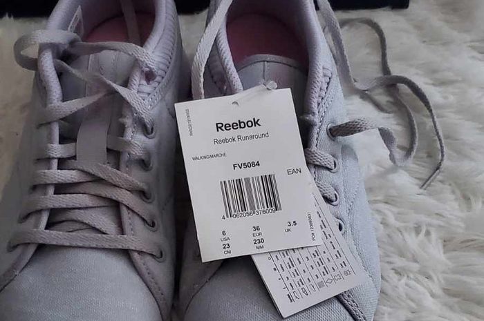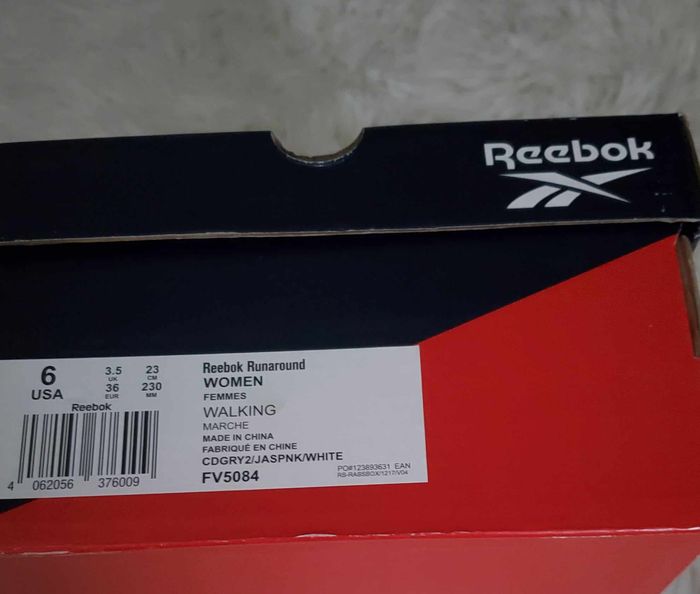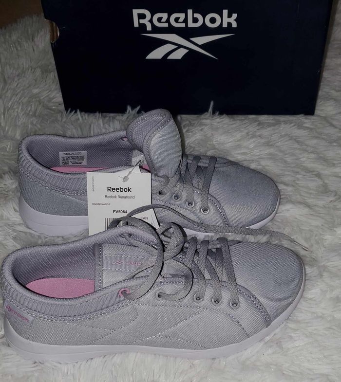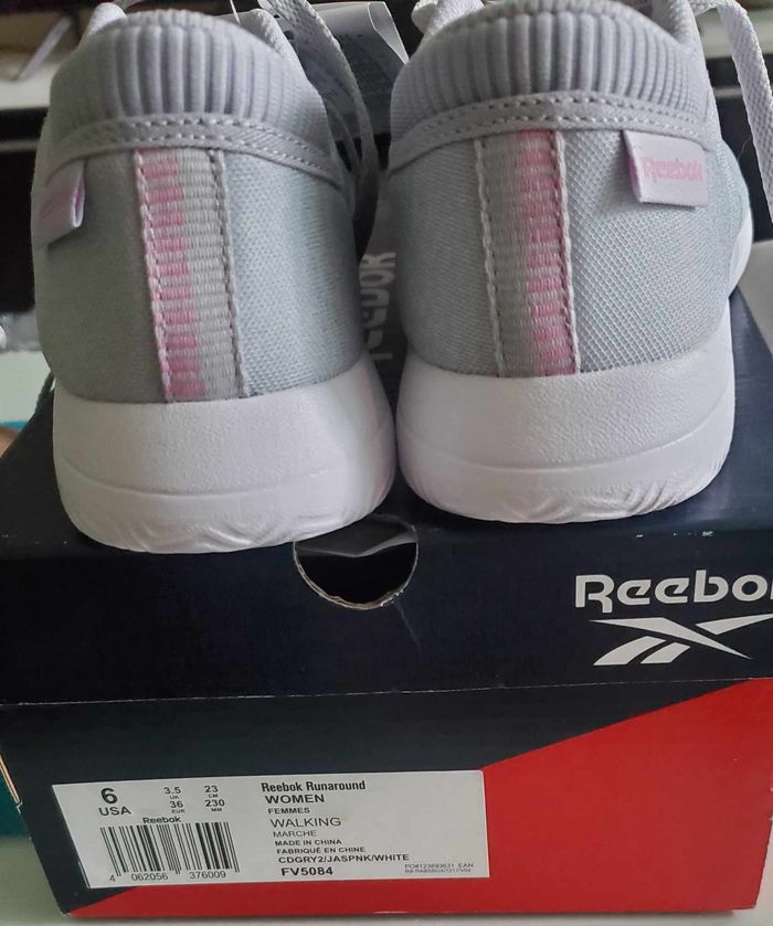 REEBOK runaround neuves étiquette boite d'origine baskets grises/blanche/rose tissu souple baskets de marche #lesplacardsenfoliechaussure