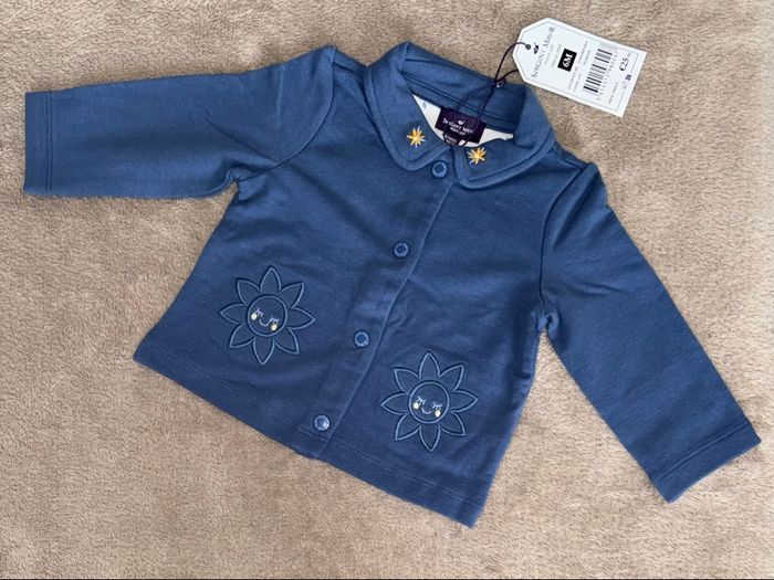 Veste/gilet bleu marine motifs fleurs 6 mois (68cm) Sergent major Neuve