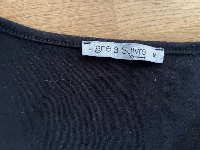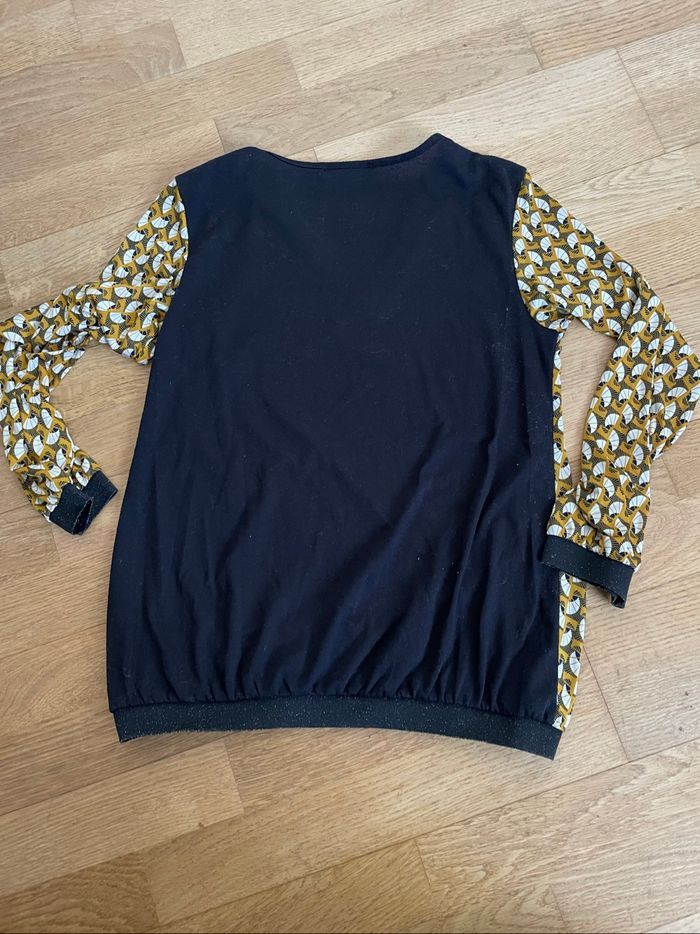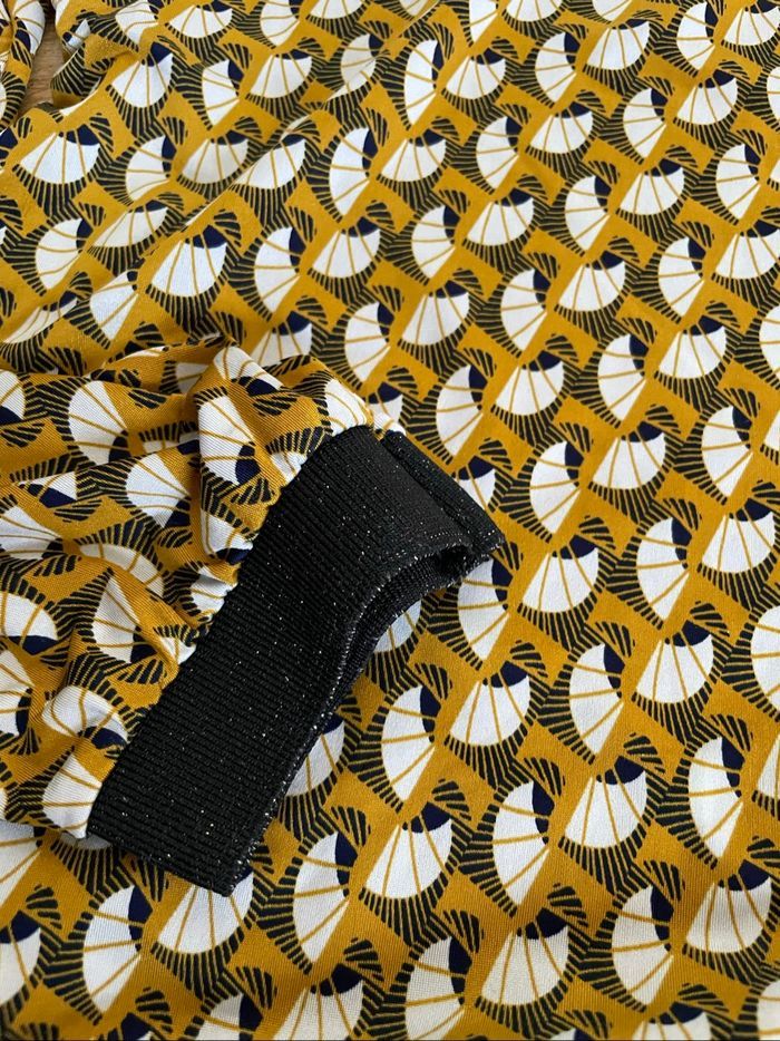 T-shirt femme Marque Ligne à Suivre taille M Couleur noir et moutarde Élastique noir pailleté à la taille et aux poignets