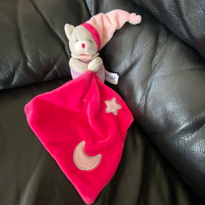 Doudou BABY NAT' Babynat chat Rose Fushia luminescent étoile Mouchoir