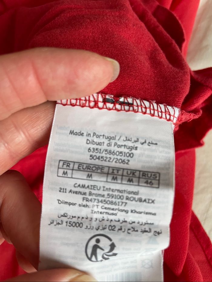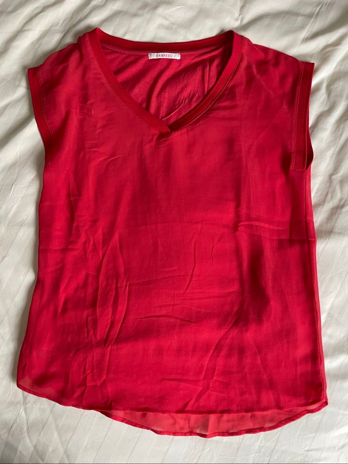 T-shirt rouge col V En voile et doublé devant Marque Camaïeu Taille M