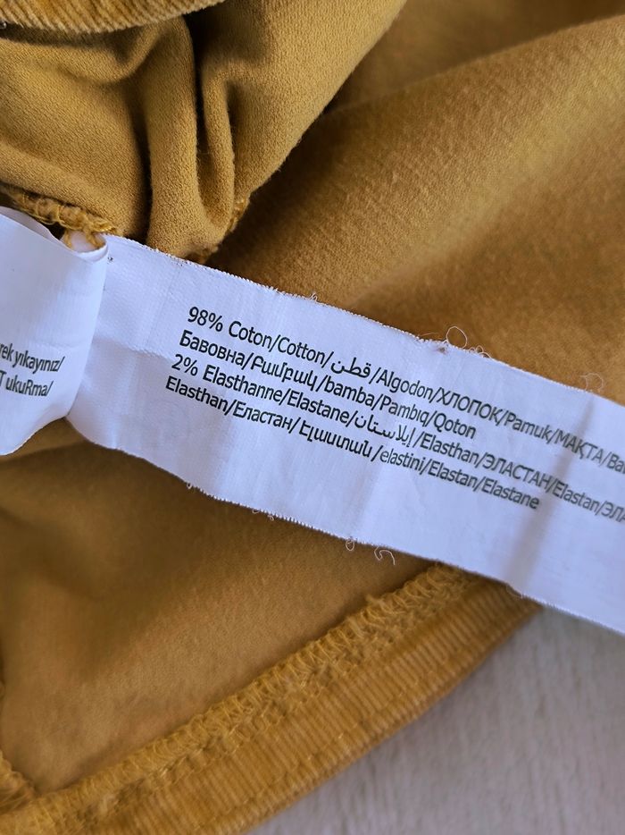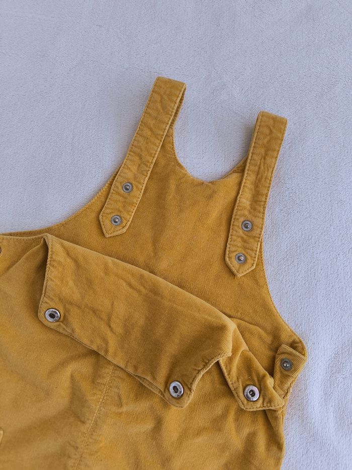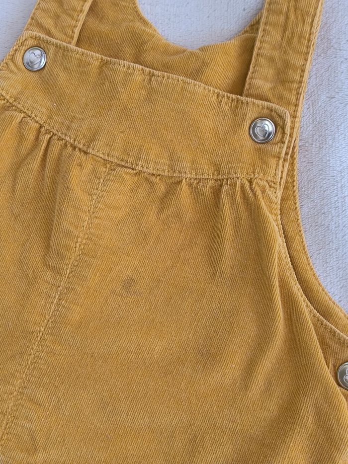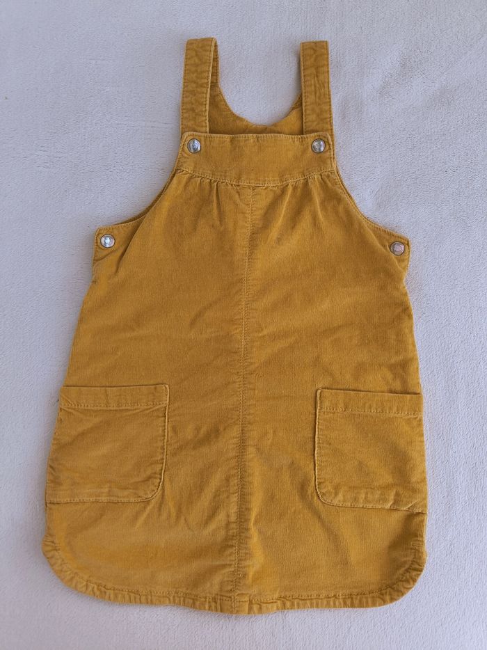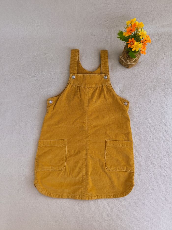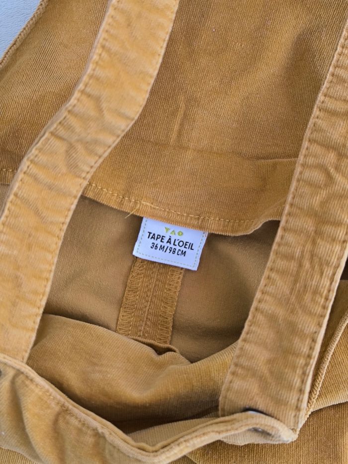Robe salopette à bretelles Marque Tape à l'œil Taille 36 mois, 98 cm • Coloris moutarde • Bretelles avec pressions • 2 poches • Velours côtelé, doux • Petites taches sur le haut, elasthane qui ressort sur l'arrière En bon état #evelyne_filles_3ans #evelyne_filles