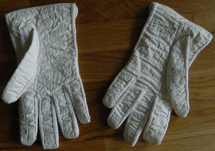 Gants en cuir et Tissus vintage T 7.5 Blanc 21 cm de jusqu'à l'index et 10 cm de large pour le poignet Très bon état Envoie sous 48 h
