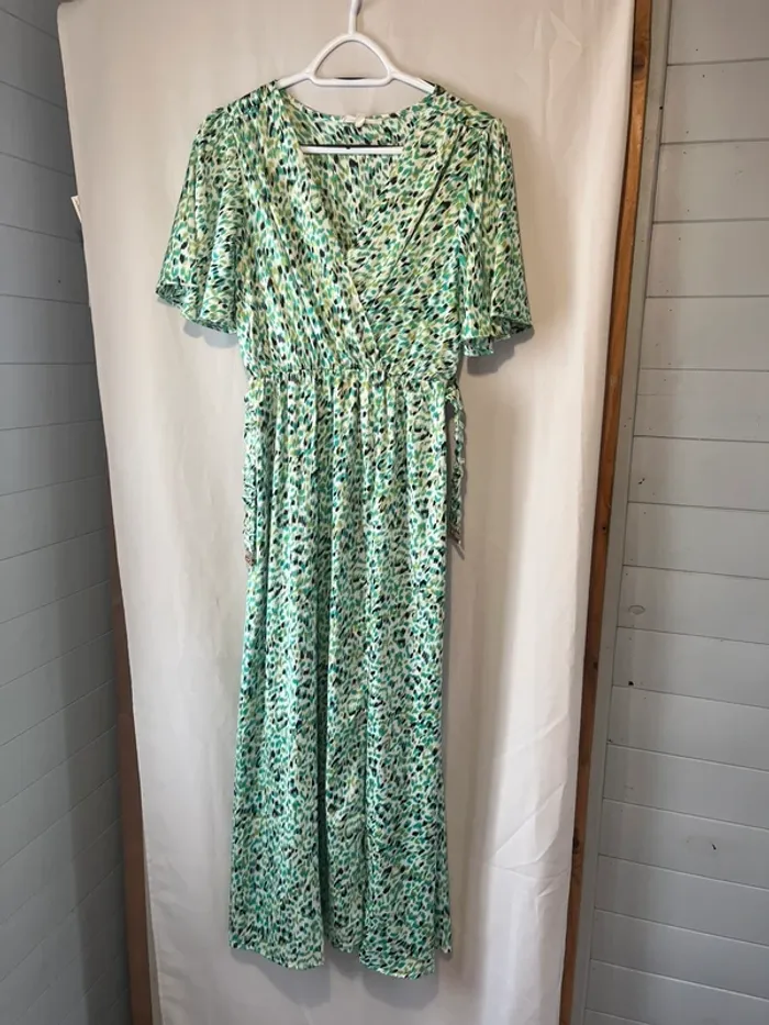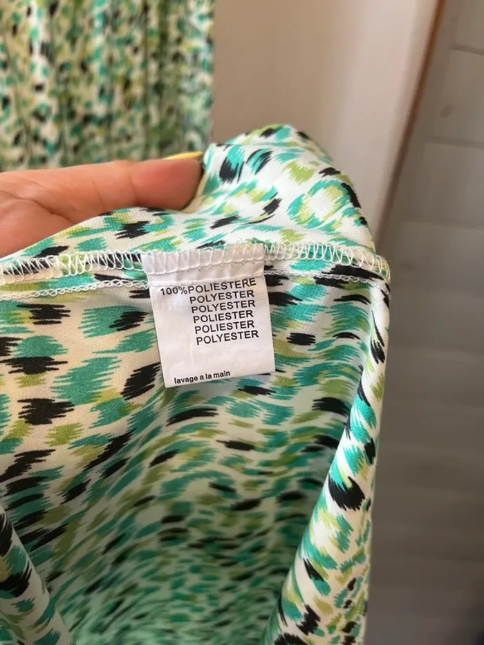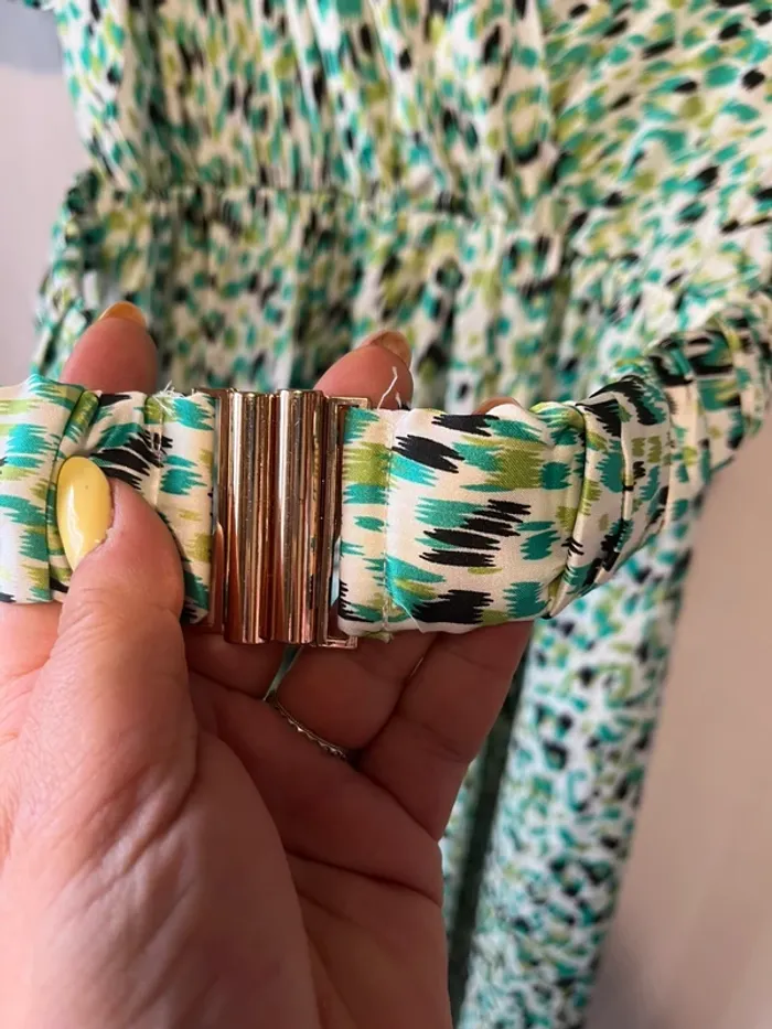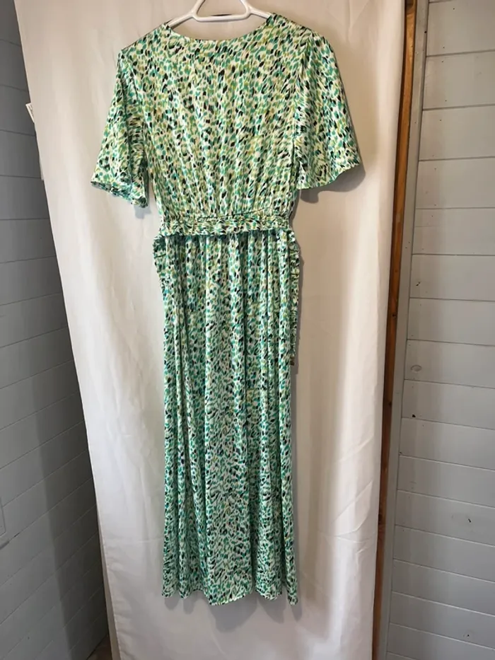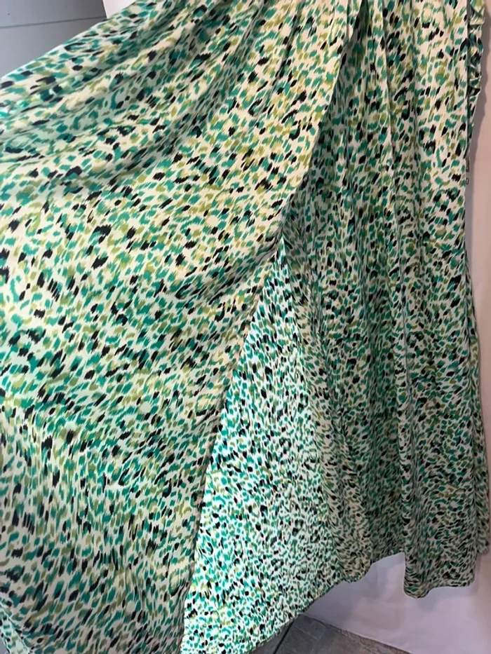 Robe, longue Imprimer verte et noire Ceinture Fluide Taille 38 Aisselle à aisselle 45 cm