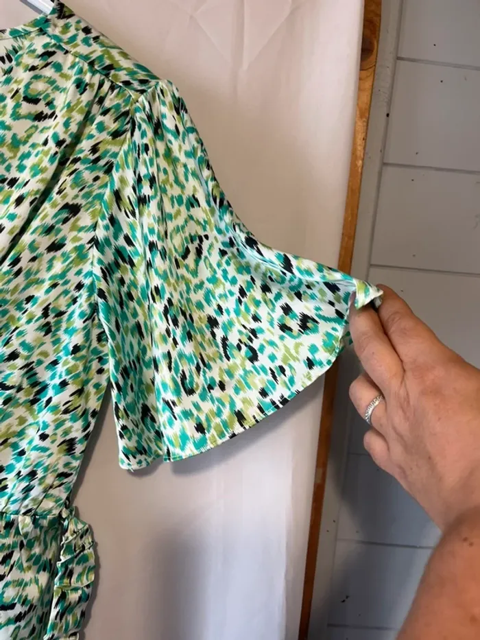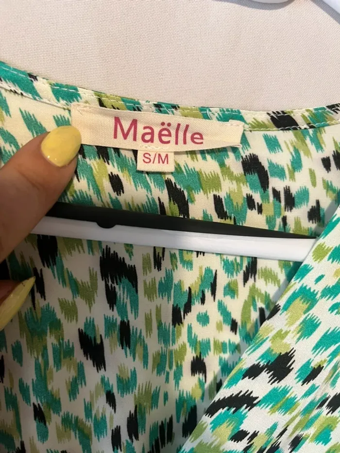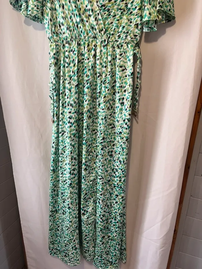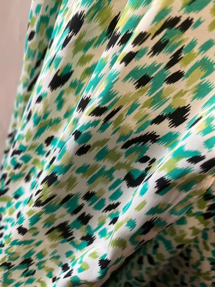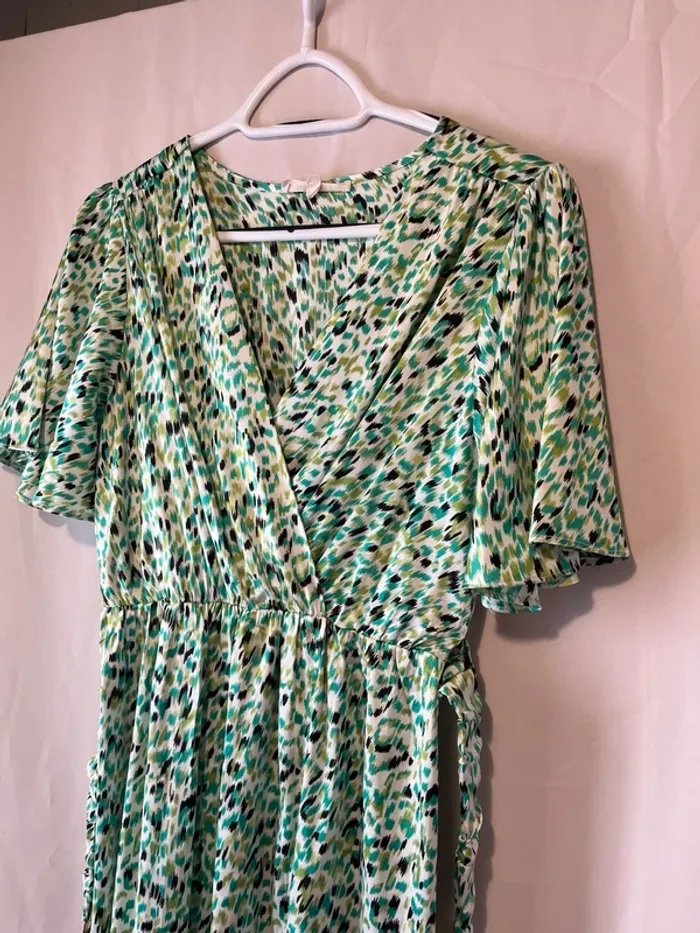 Robe, longue Imprimer verte et noire Ceinture Fluide Taille 38 Aisselle à aisselle 45 cm