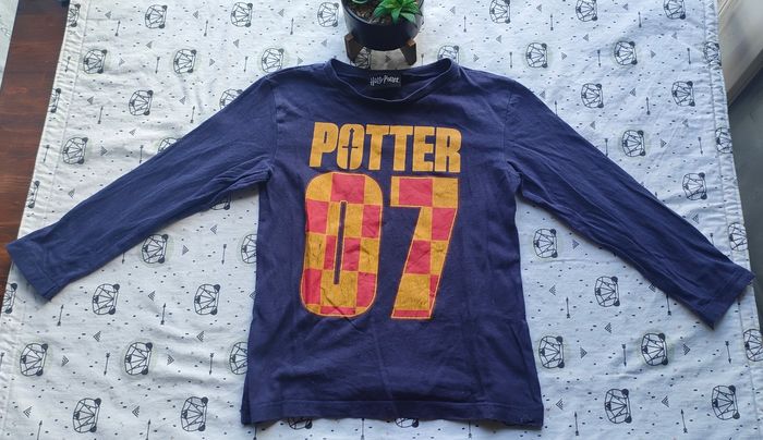 Tee-shirt ML bleu marine Harry Potter en bon état ( craquelé sur le dessin et écriture) pour garçon taille 5 ans