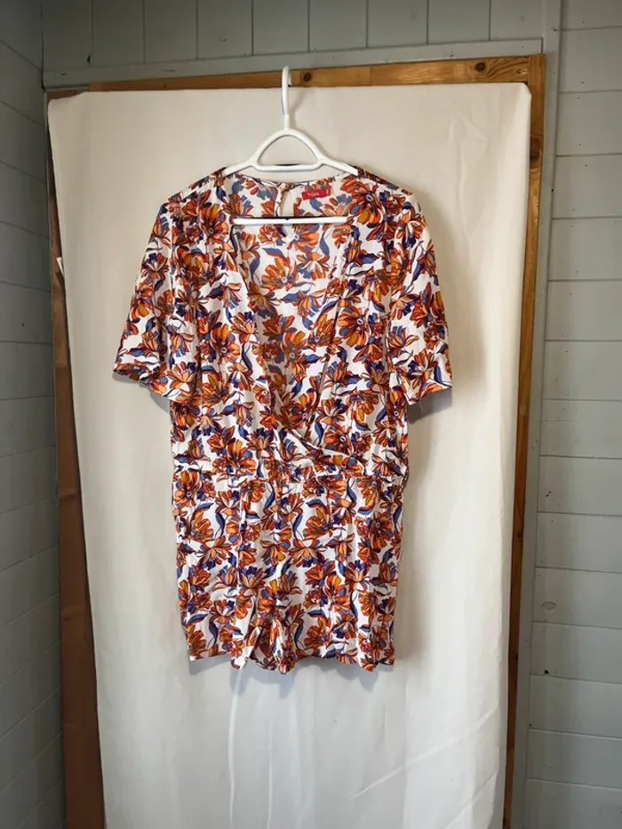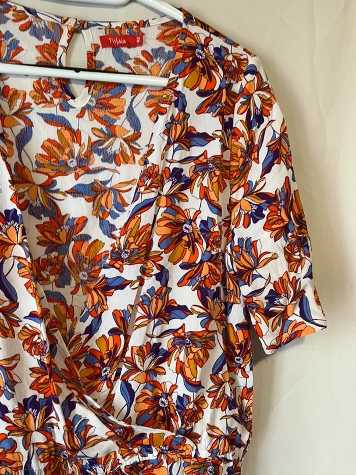 Combishort Blanche imprimée fleurs Taille 42 Sans la ceinture Fluide