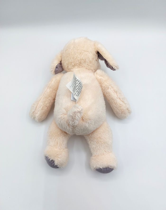 Peluche doudou chien écru beige JACADI rayures bleu blanc