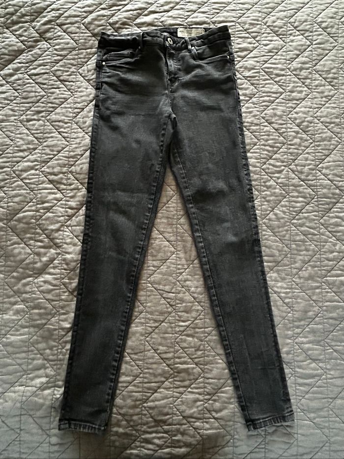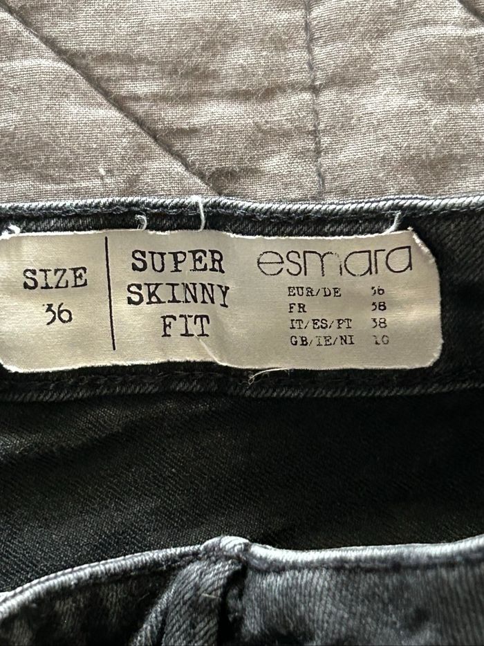 jean skinny fit femme, en matière extensible. Taille 36 de la marque Esmara. Couleur noir chiné. En très bon état.