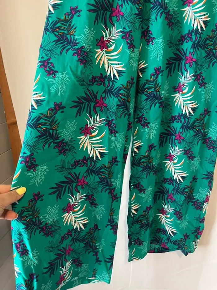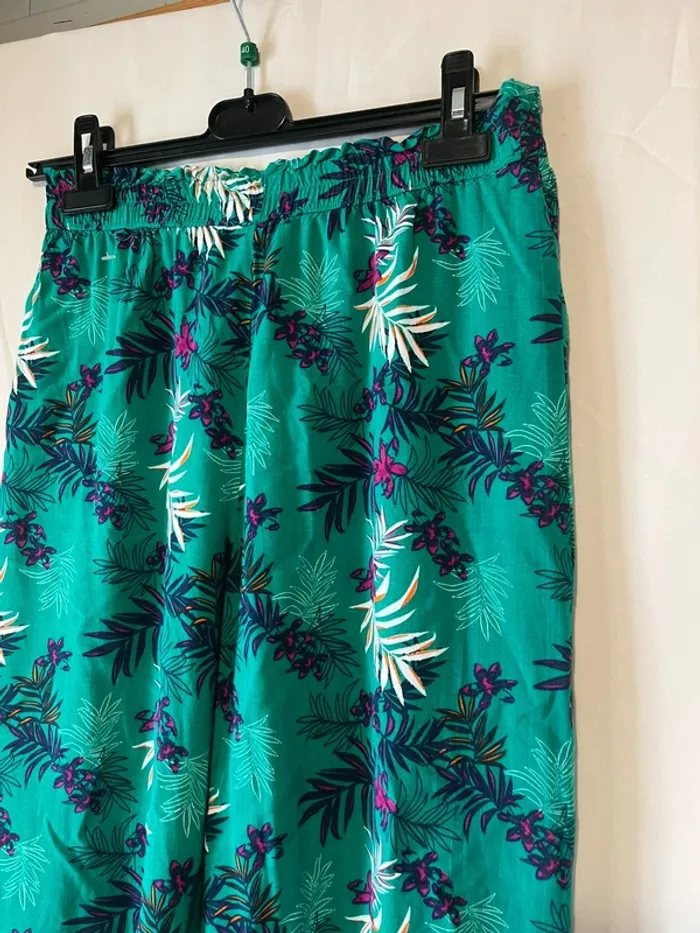 Pantalon fluide Vert imprimé fleurs Taille 38