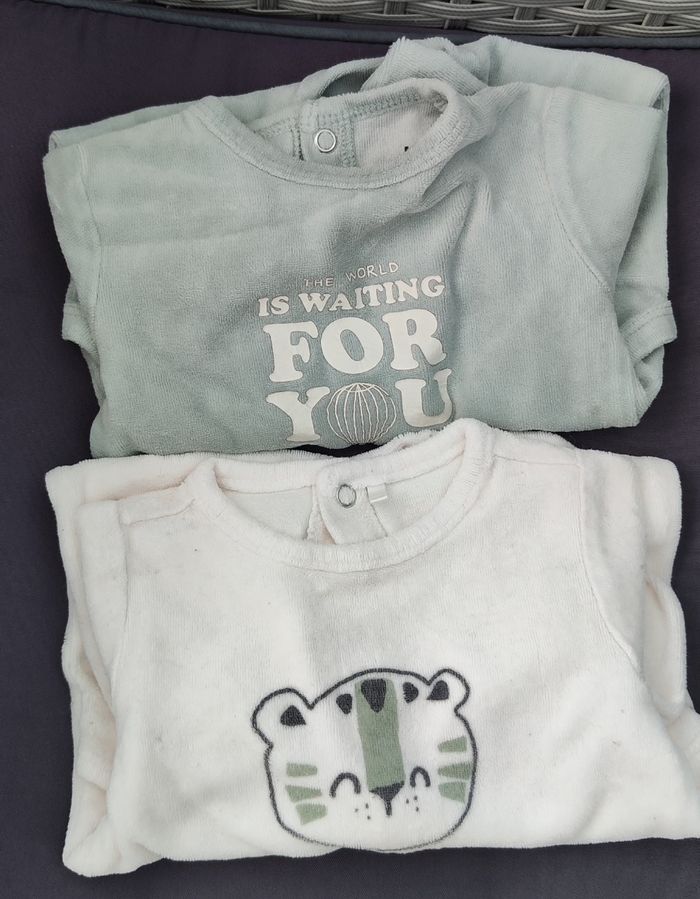 Deux pyjamas velours 3 mois un pyjama Kiabi et l'autre sans marque