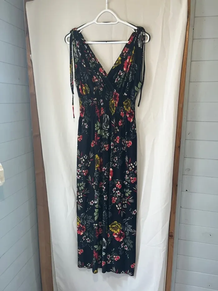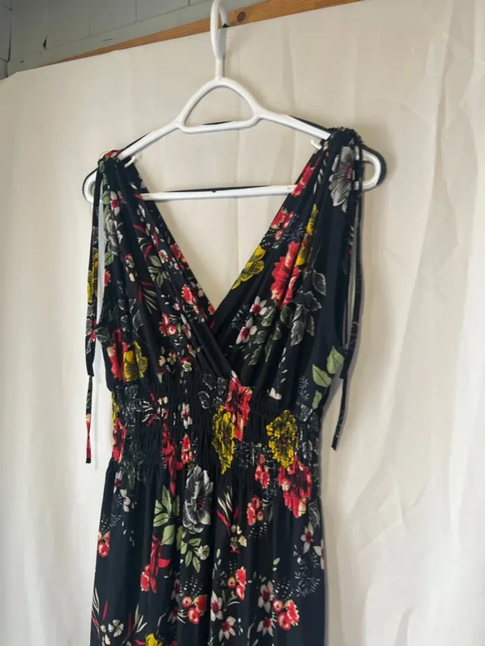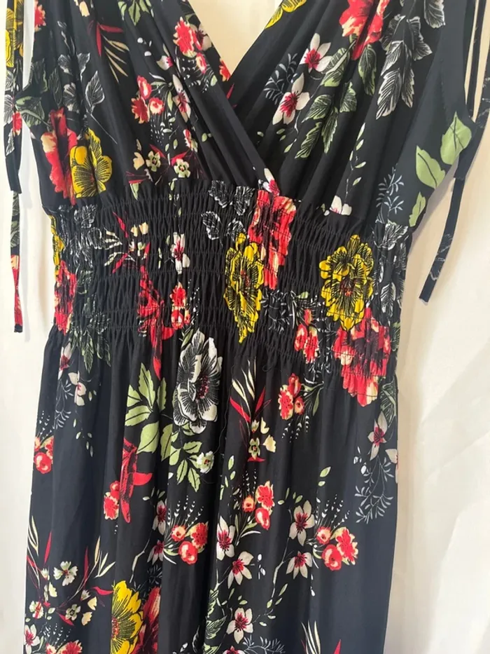 Robe longue Noire imprimée fleurs Taille 38/40 Robe magique