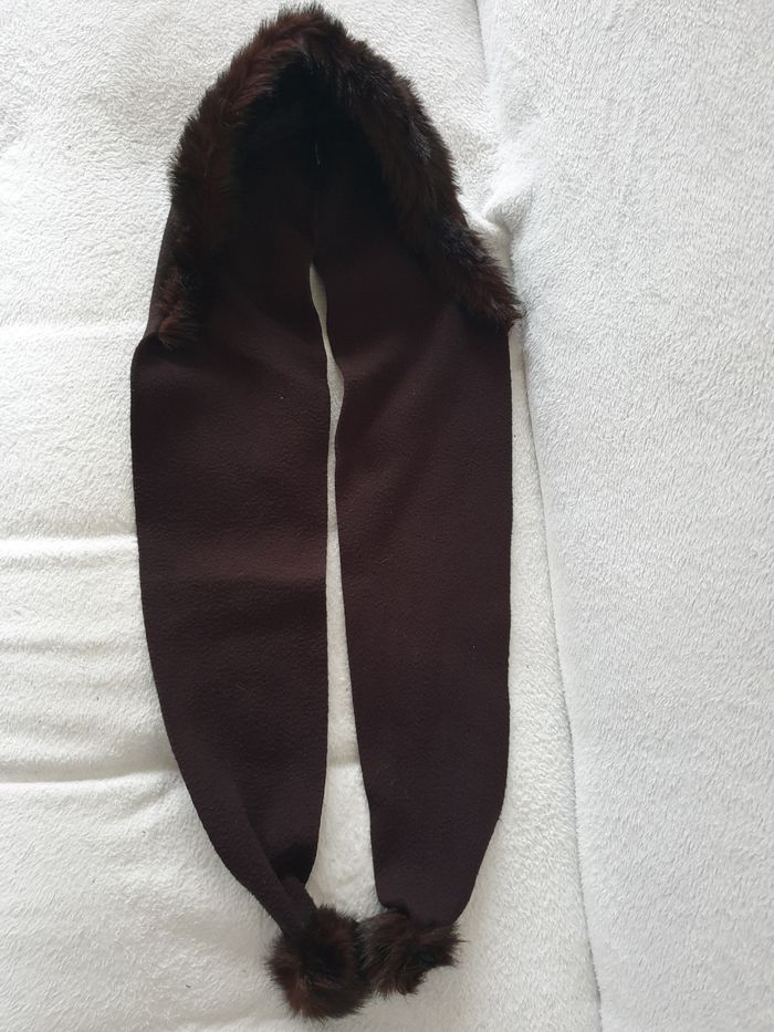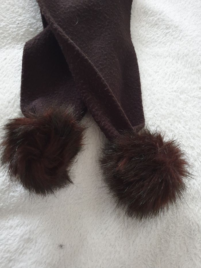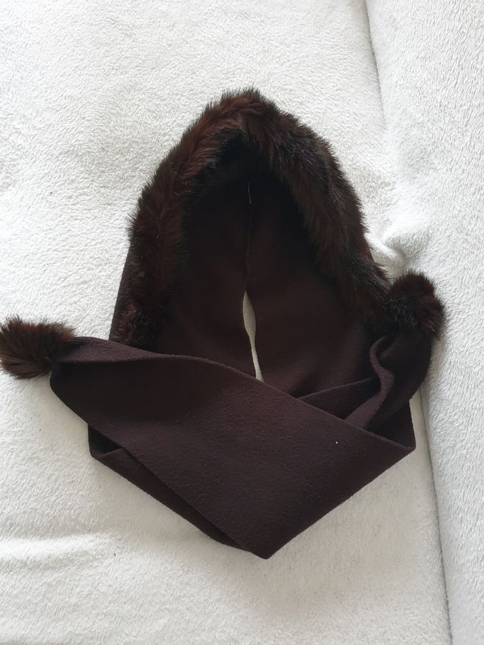 Bonnet écharpe a pompons. Marron. Vintage. Made in France. Parfait état.