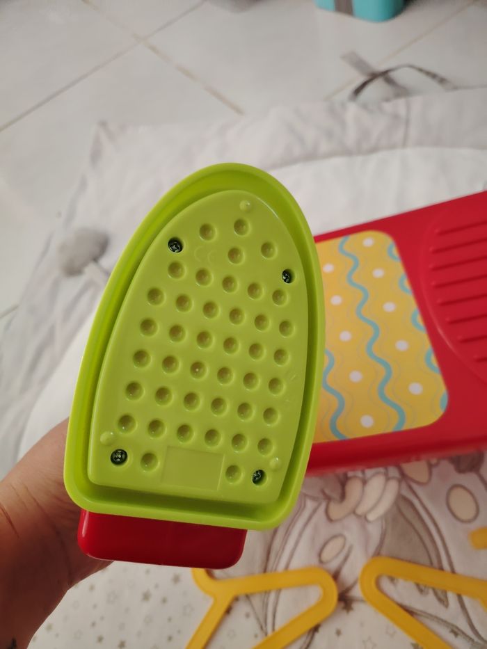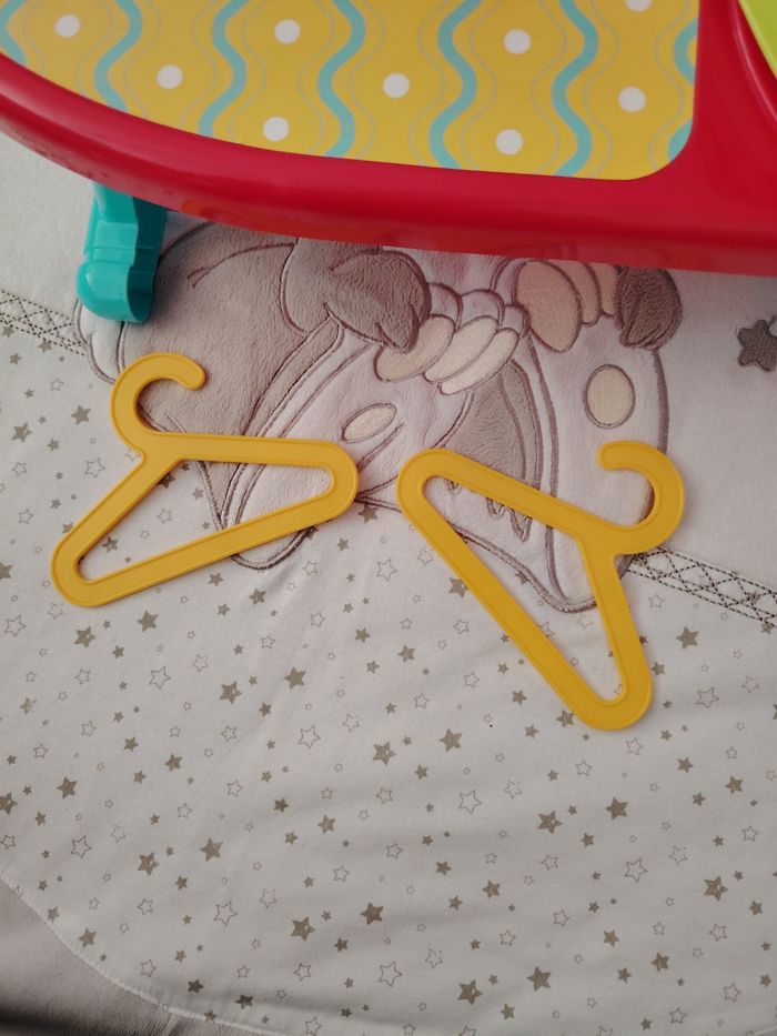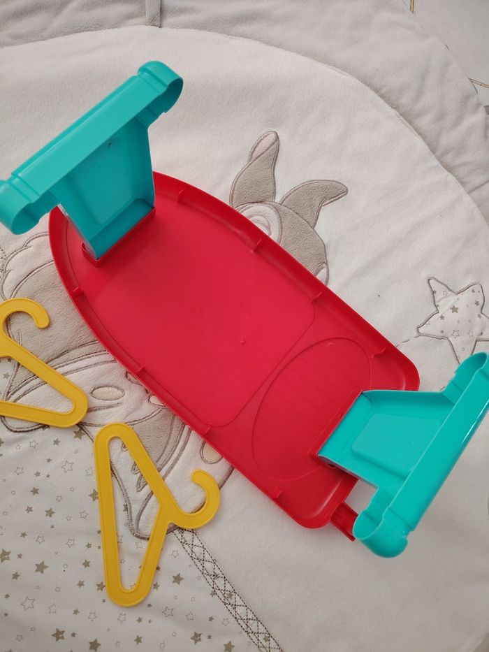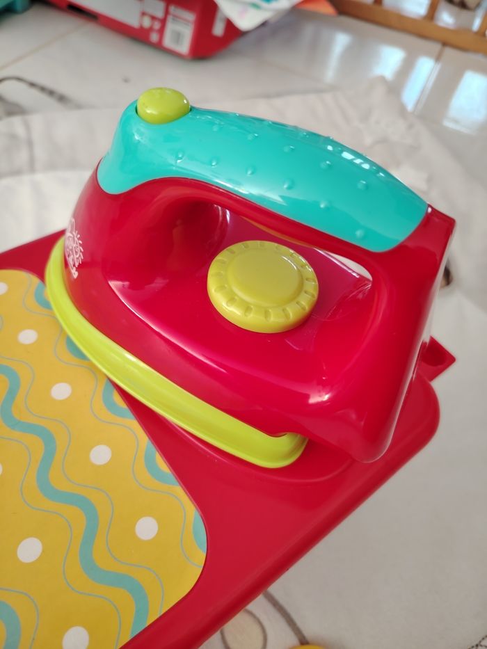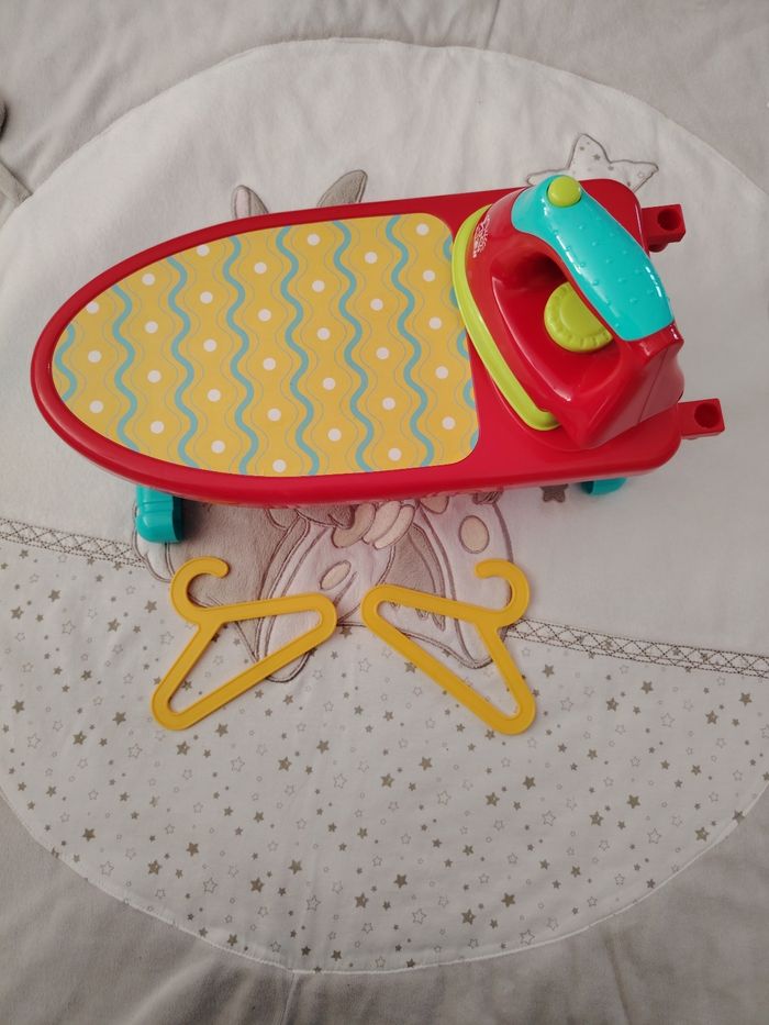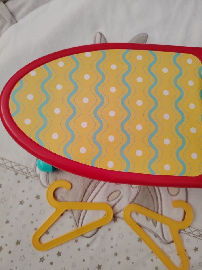 Jouet table a repasser avec son fer et 2 cintre. Le fer ne fait pas de bruit .