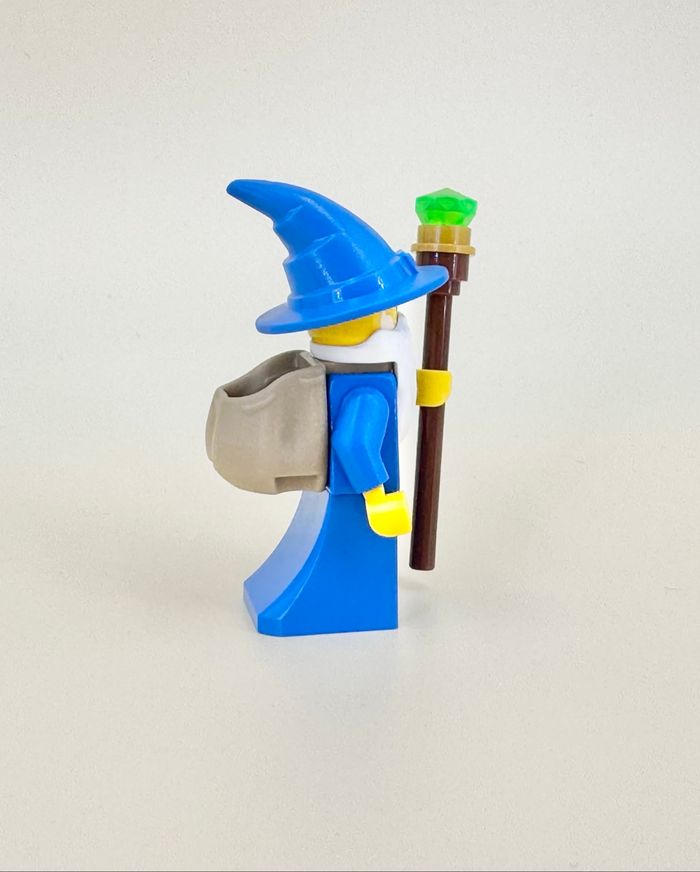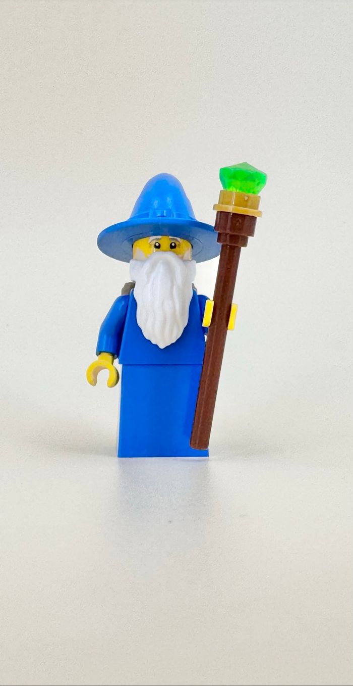 Bonjour, Je vous propose quelques doubles de ma collection dans la gamme Castle. (1 seul double pour chaque figurine). Ici, le magicien apprenti ou magicien sorcier ou encore Le Majisto Wizard - en jupe cette fois - avec sa traditionnelle barbe blanche, portant sa besace sur le dos et s’aidant de son bâton de magie pour avancer. Pièces garanties neuves et 100% Lego (la figurine montée en photo est celle de ma collection personnelle). Envoi protégé et soigné.