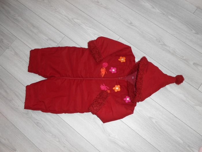 Combinaison Doudoune avec capuche non détachable fermeture éclair 100 % polyester doublure : 100 % coton garniture : 85% acrylique 15 % polyester garnissage : 100 % polyester longueur = 60cm