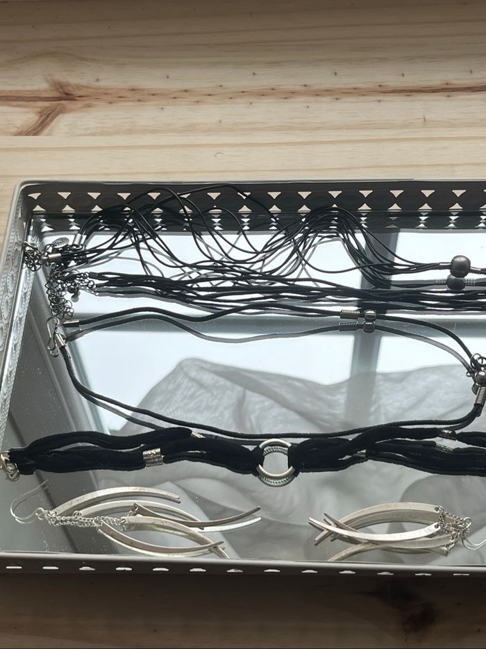 〰️ Lot bijoux thème rock, argentés et noirs - 3 colliers cordon noir pendentif ovale, serpent et boules - un bracelet noir - un bracelet breloques argentés et noirs - une bague noeud noire - un bracelet cordon noir pendentif rond - une paire de boucles d’oreilles argentée 🌸 État : BE à TBE (les boucles d’oreilles et les boules sont un peu noircies) 🌸 Marque : sans marque 🏷️ Les réductions sur les lots sont activées ⏳ Pas de réservation ✂️ Les colis sont soigneusement emballés 🎁 Un petit cadeau sera mis dans chaque colis #virginie63zbijoux