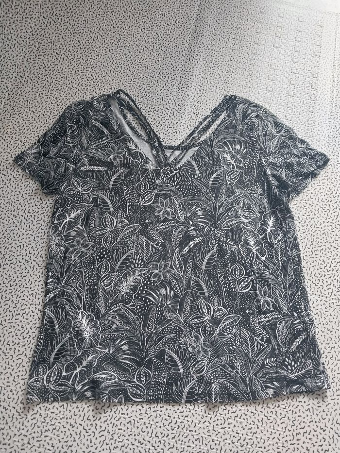 T-shirt femme Cache Cache – imprimé floral noir et blanc – taille L - photo numéro 1