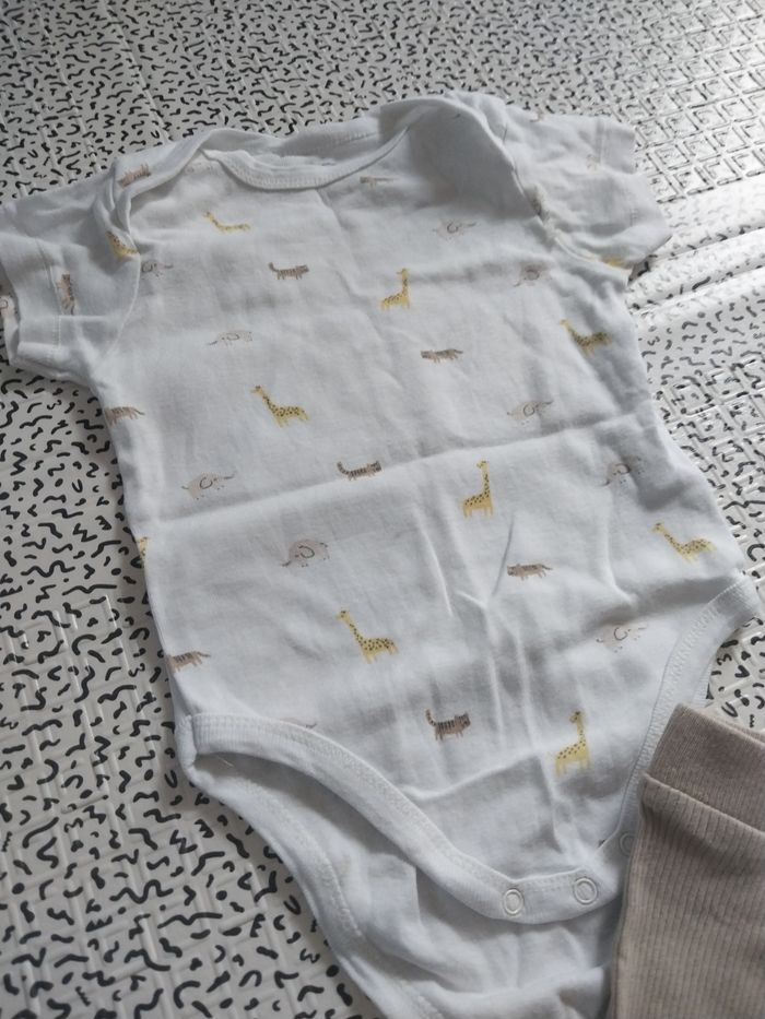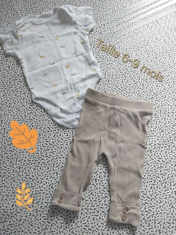 Ensemble bébé Mots d’enfants 6-9 mois – body animaux + pantalon côtelé beige - photo numéro 1