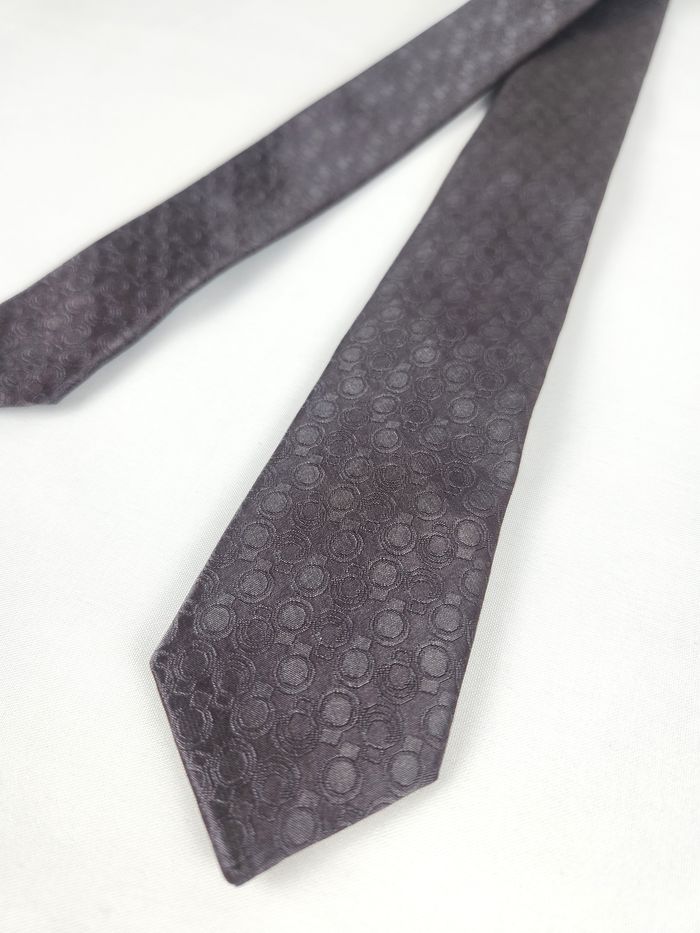 Cravate Azzaro en soie Motif cercles discrets Gris anthracite