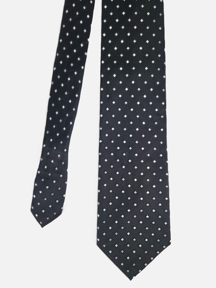 Cravate Azzaro en soie Motif petits carrés Noire et blanche - photo numéro 1