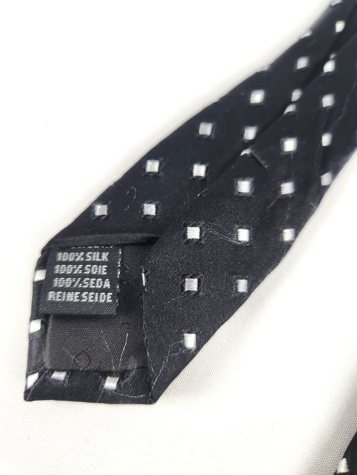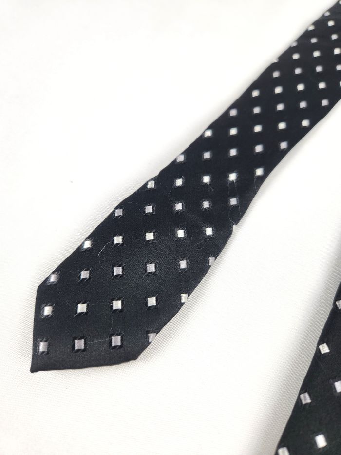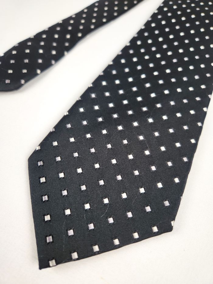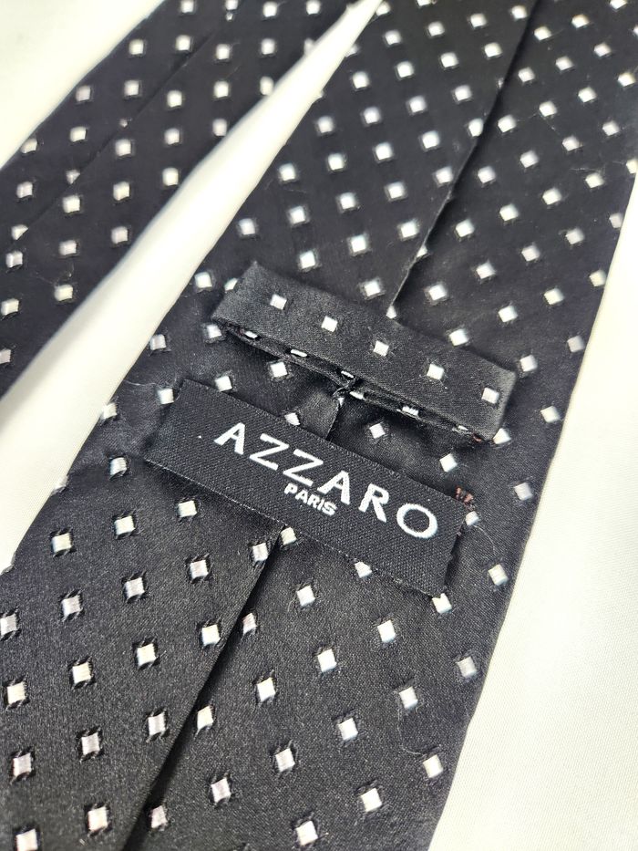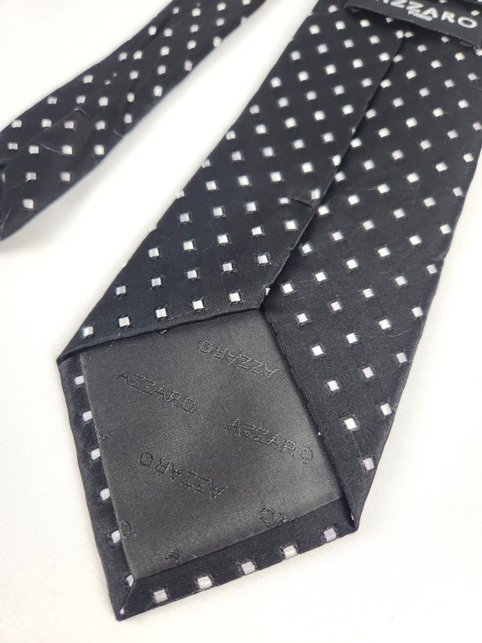 Cravate Azzaro en soie Motif petits carrés Noire et blanche - photo numéro 8