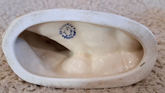 🪆 Petite statuette en biscuit polychrome - goéland et vague