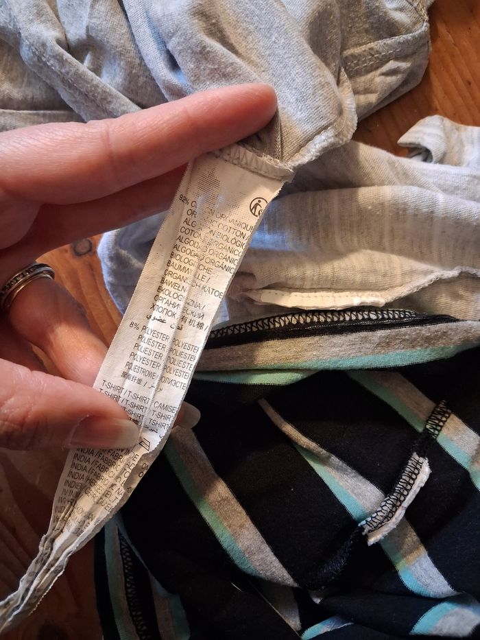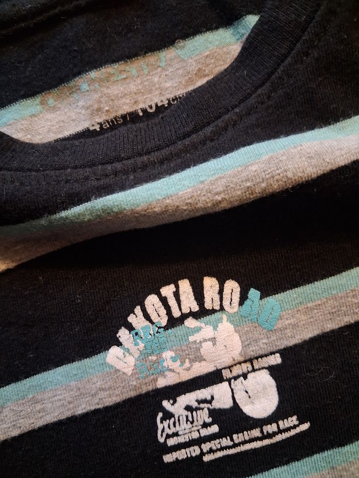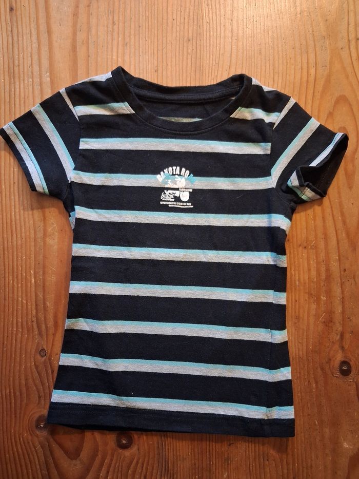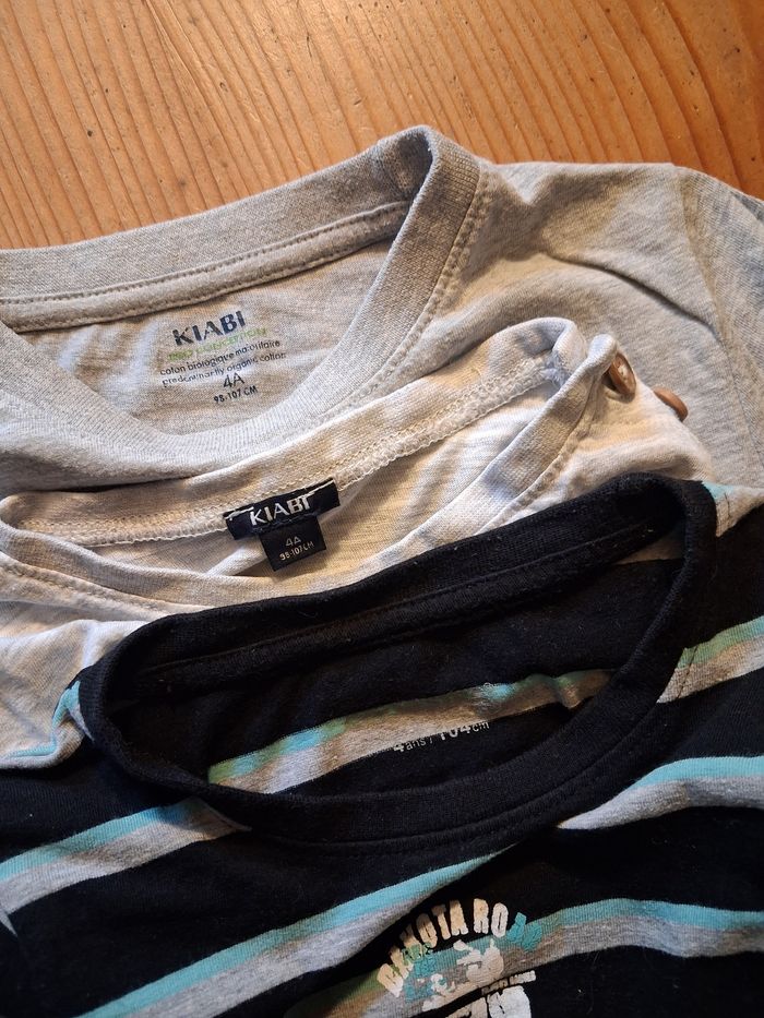 Lot de 3 t.shirts manches courtes : - les 2 gris : Kiabi - 98/107 cm - le noir rayé : Orchestra - 104 cm Bon état général