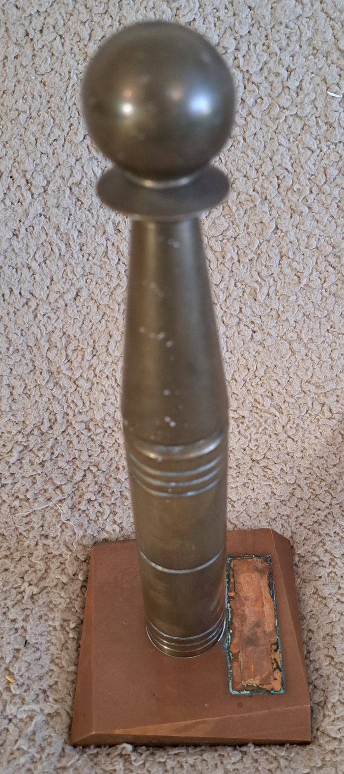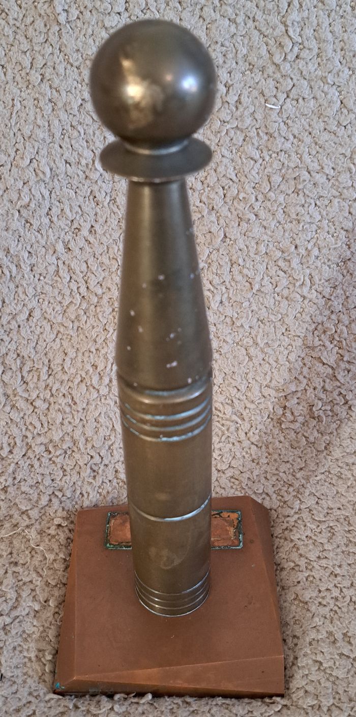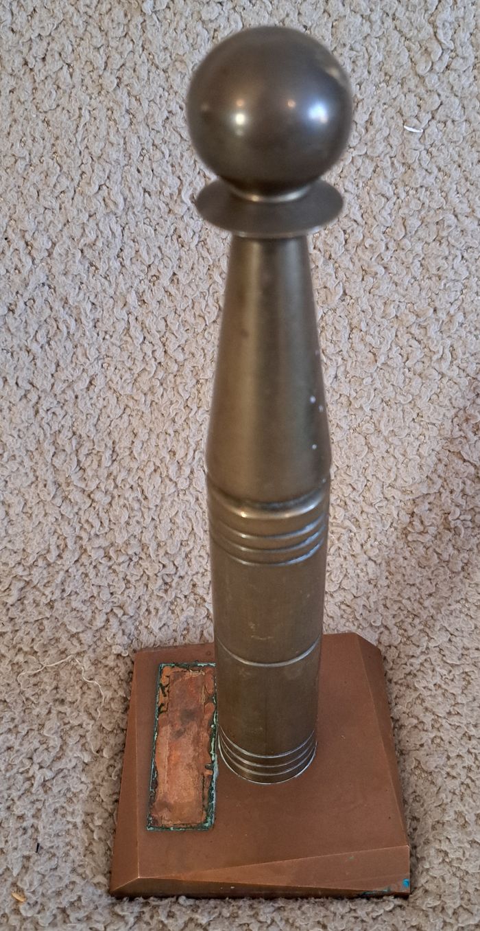 Ancienne quille militaire sur socle en bronze et cuivre