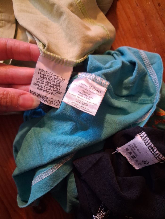 Lot de 3 t.shirts manches courtes : - Le vert : Tape à l'œil - 102 cm - Le bleu & le noir : Gémo Bon état général