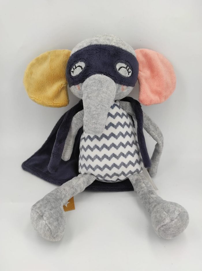 🐘 Peluche Doudou éléphant Tao avec masque et cape de super héros. Marque Tape à l'oeil. 📏 Dimension : 29 cm environ ✨ Occasion, très bon état, mais manque le hochet 🧼 Lavé avec lessive hypo allergénique 👀 Vous achetez la peluche que vous voyez sur les photos Sur mon dressing , remise de : 😊 -10% dès 2 articles achetés, 🙂 -15% dès 3 articles achetés, 😃 -25% dès 5 articles achetés, 🤩 -40% dès 10 articles achetés. Pour les lots, vous pouvez le créer directement en cliquant sur « acheter un lot » puis je vous ferais l’offre avec les remises qui s’appliquent 🚭 NON FUMEUR et sans odeurs d'animaux 📬 Envoi rapide sous maximum 3 jours