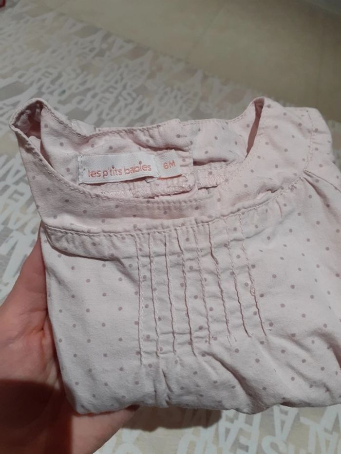 Chemisier rose pâle. Taille 6 mois. Marque Les p'tits babies. Bon état.