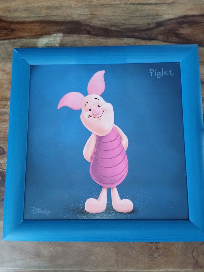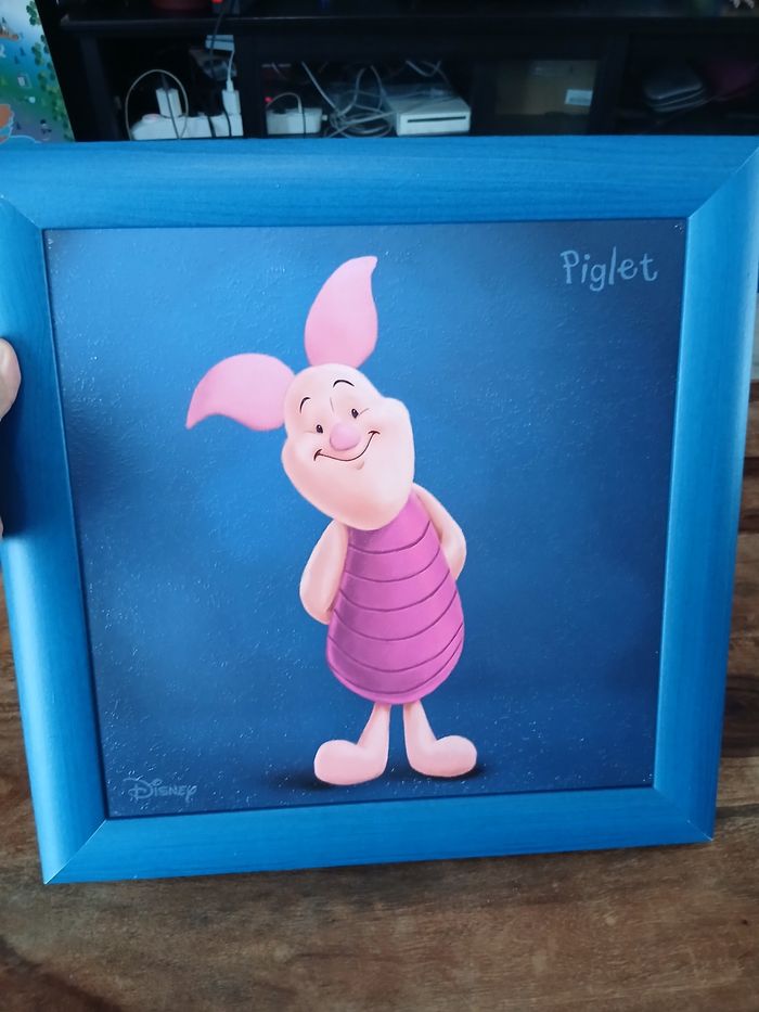 Tableau cadre et peinture Porcinnet de winnie l'ourson. La peinture et le cadre présentent des petites marques. Voir photos.